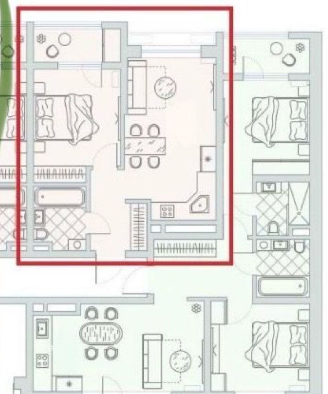 В квартире удобная планировка, просторная кухня-гостиная, встроенная зона для приготовления.