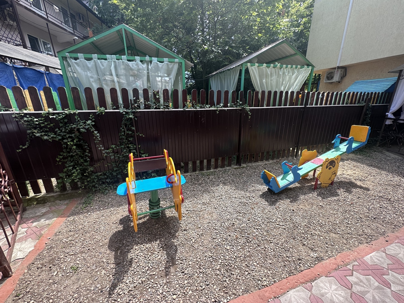 На территории предусмотрено все для комфортного отдыха: беседки, детская площадка, песочницы, детская комната, зона отдыха под навесом, отдельно предусмотрена столовая для оказания услуг питания Гостей.