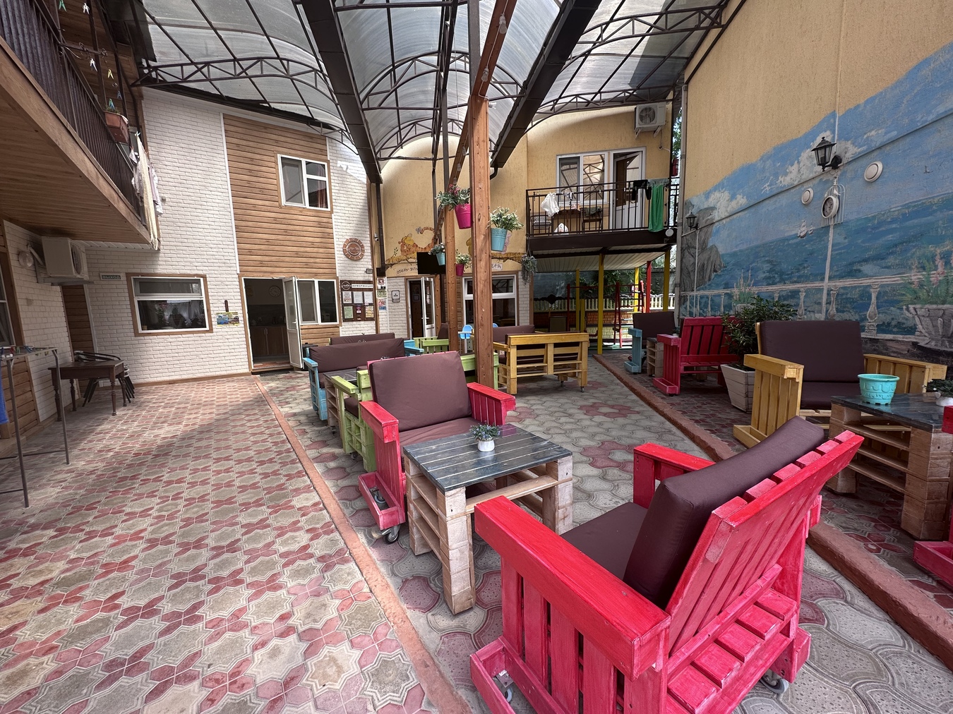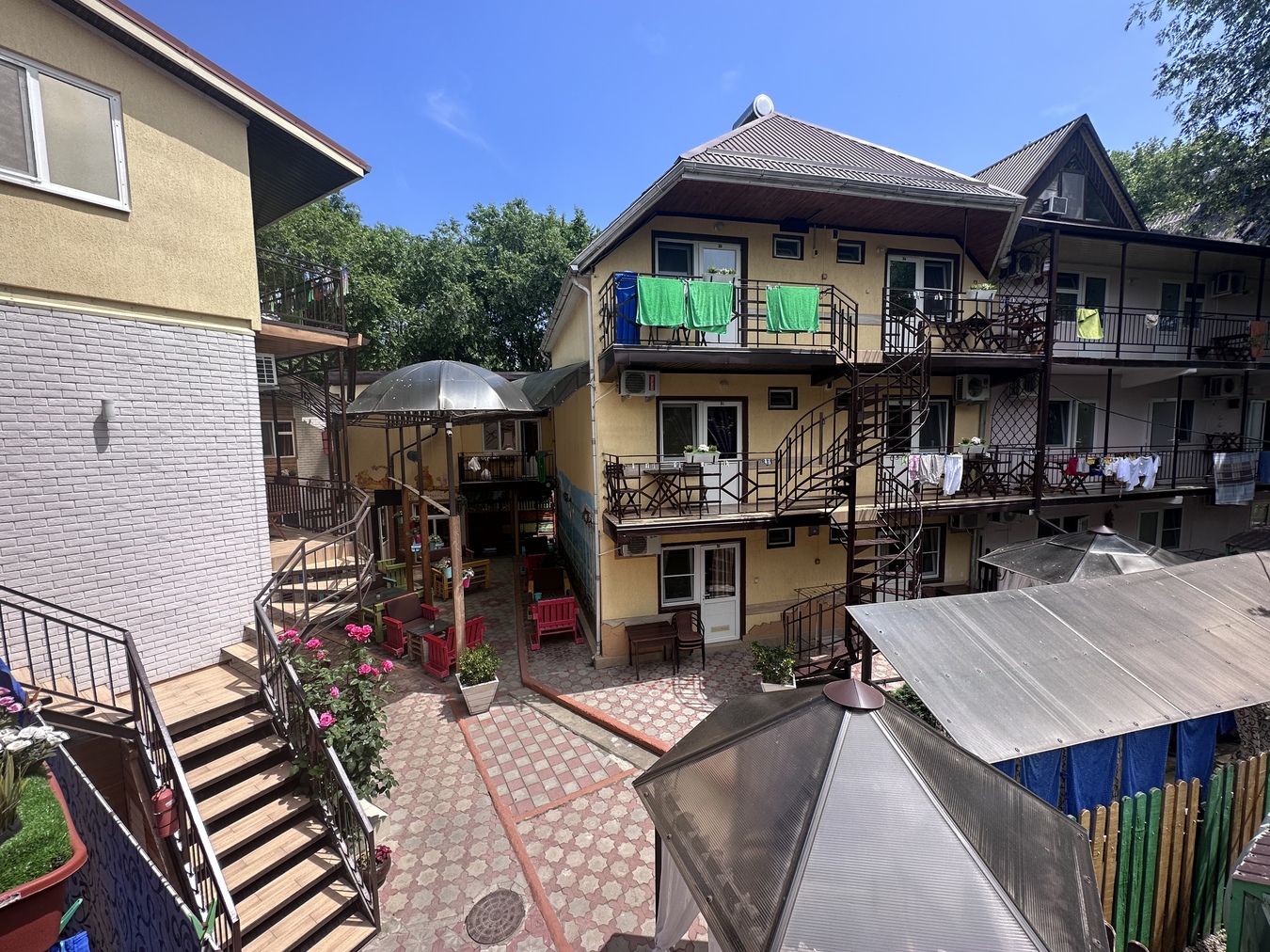 Парковка перед зданием, видеонаблюдение, построена Гостиница на основании всех разрешительных документаций, паспорт безопасности, сертификация объекта и т.д.