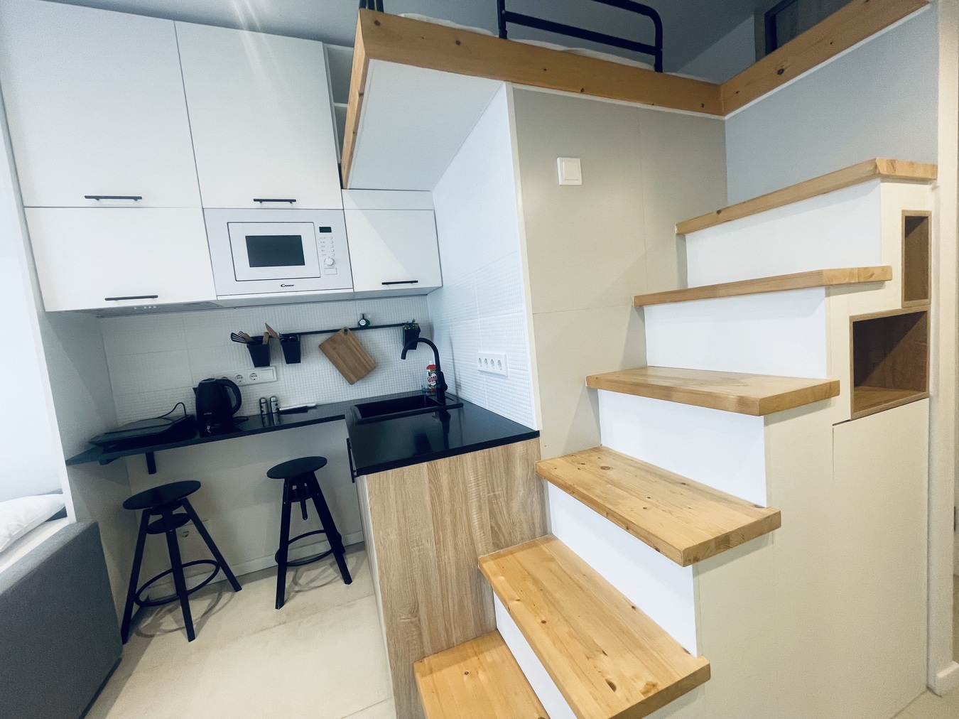 Апартамент имеет два уровня.