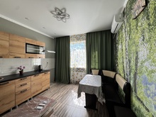Здесь есть всё необходимое: техника, мебель, стиральная машина, чайник, микроволновая печь, холодильник, кухонная зона с плитой, телевизор, приборы, мягкая мебель, двуспальная кровать.