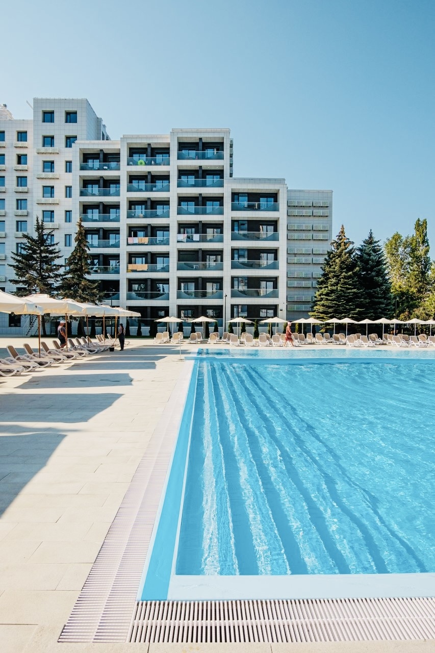 Здесь есть три бассейна, зона гидромассажа и спа-зона, вы сможете не только отдохнуть, но и укрепить здоровье.