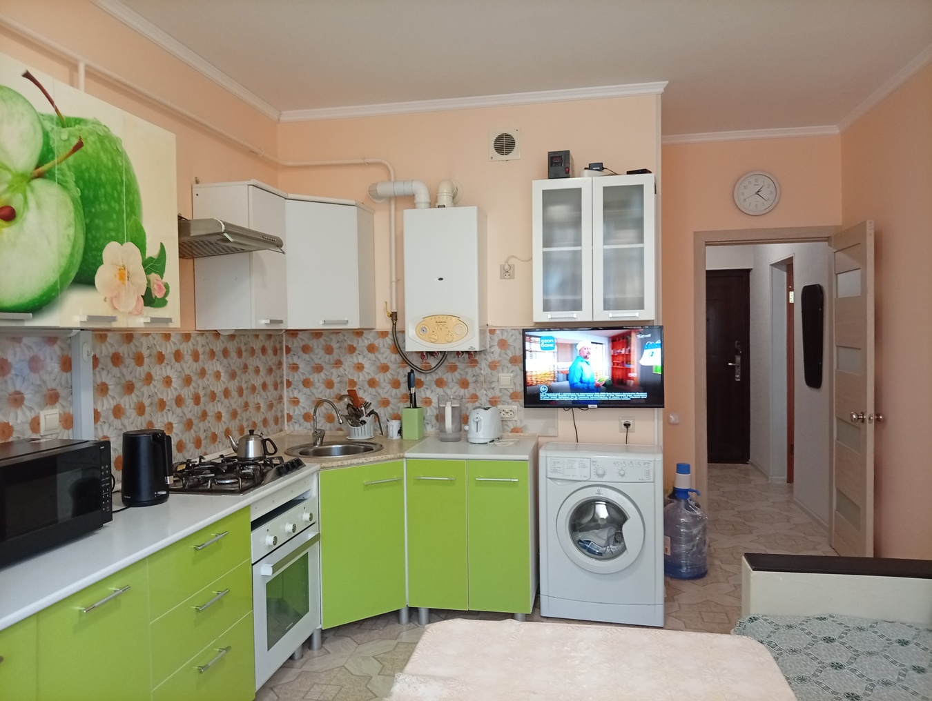 Однокомнатная квартира с мебелью и ремонтом, индивидуальным газовым отоплением в современном доме. Площадь жилой комнаты увеличена за счет площади лоджии (отсутствует проем). Кухня с эркером просторная, светлая, оборудована всей необходимой бытовой техникой и мебелью, как и жилая комната с прихожей. При необходимости мебель и техника остается новому хозяину. Входная дверь металлическая.