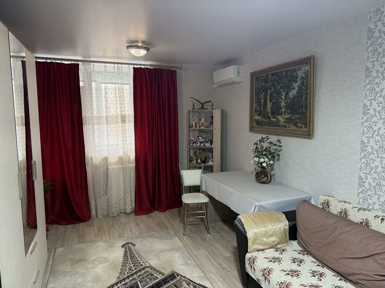 Выполнен ремонт, делали для себя. Мебель и бытовая техника остается.