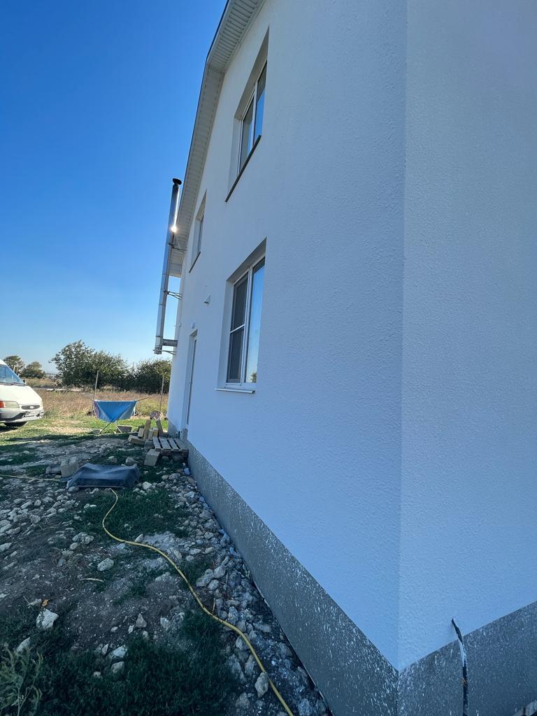 Дом 2020 года постройки, утеплен снаружи пенопластом 10 мм и отштукатурен, покрашен.