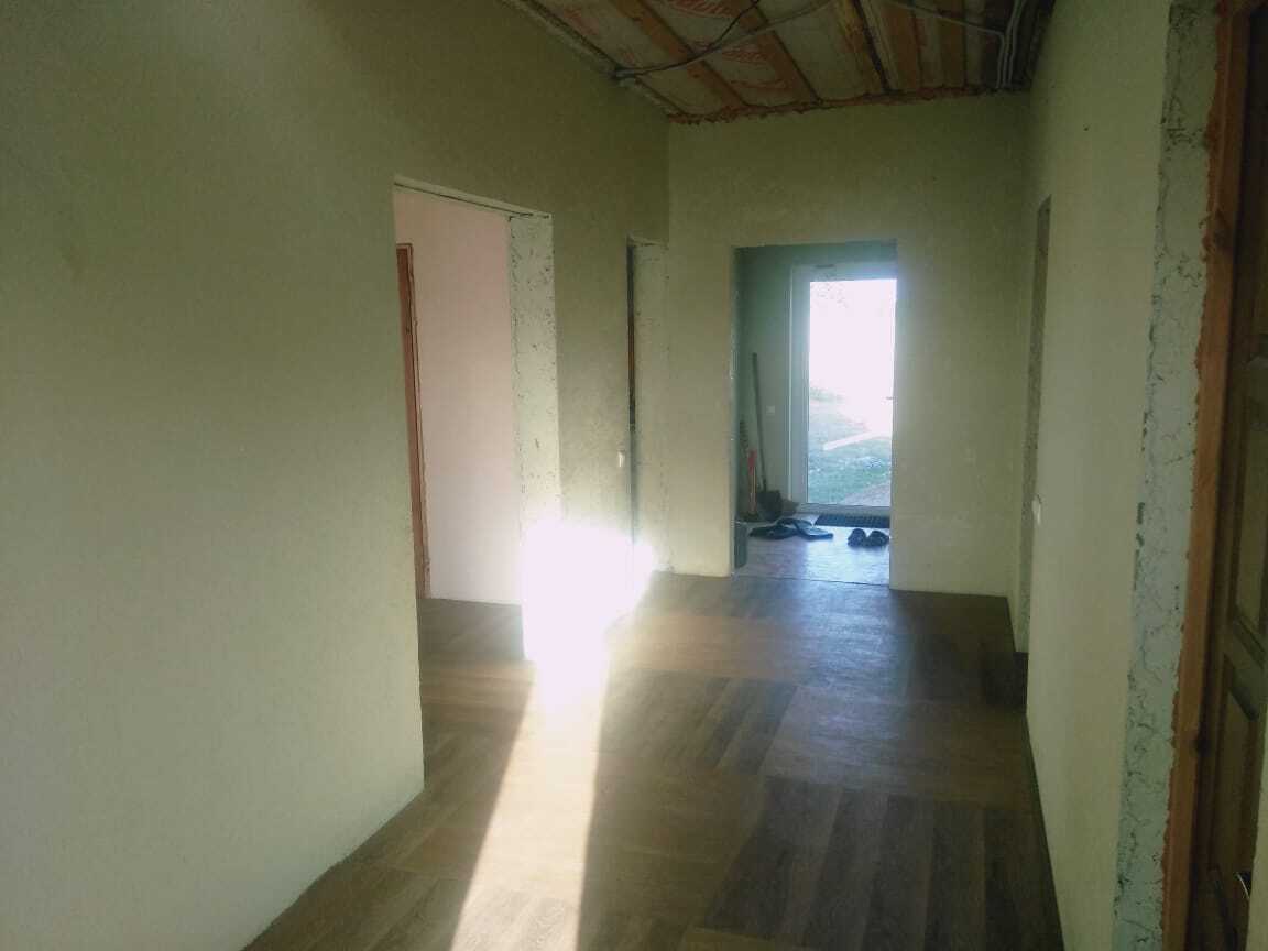Окна энергосберегающие, двухкамерные, стекло 4 мм. Двери однокамерные, но из стекла 6 мм. Стены отштукатурены, покрашены, на полу инженерная доска.
