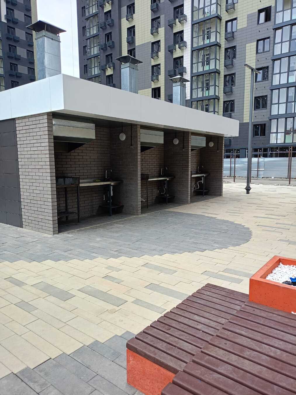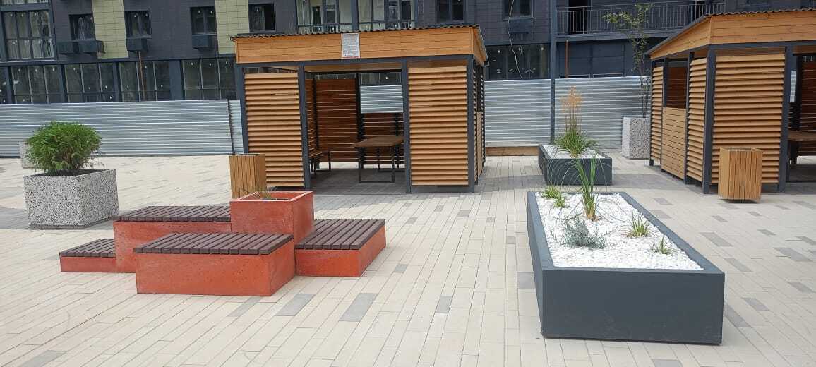 Во дворе организована зона барбекю с мангалами и мойками, беседки для приятного время провождения с семьёй и близкими.