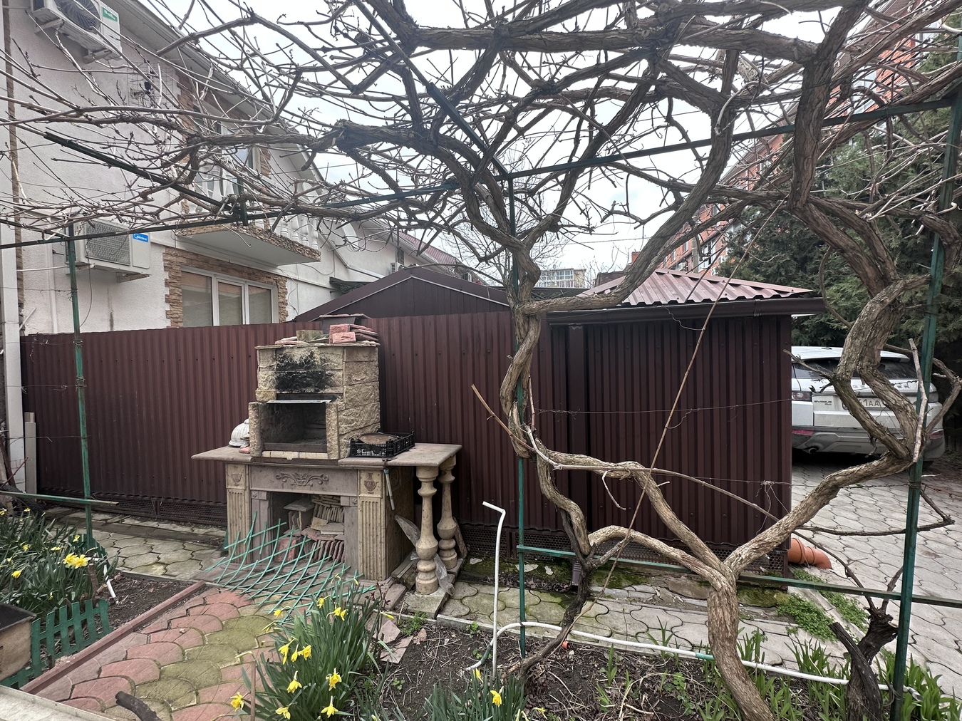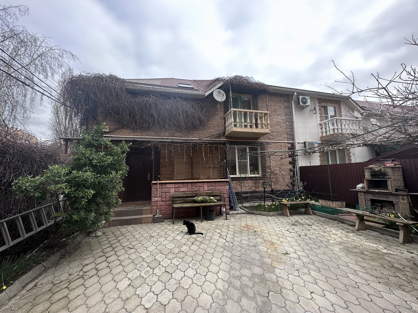 На территории есть мангальная зона, весь дом оплетен диким виноградом, много зелени, палисадник. Место, где расположен дом очень тихое, спокойное, несмотря на близость расположения к основным объектам инфраструктуры.
