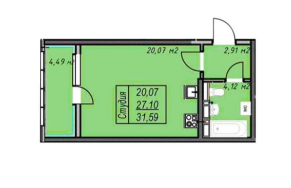 Студия с качественным ремонтом Без обременений