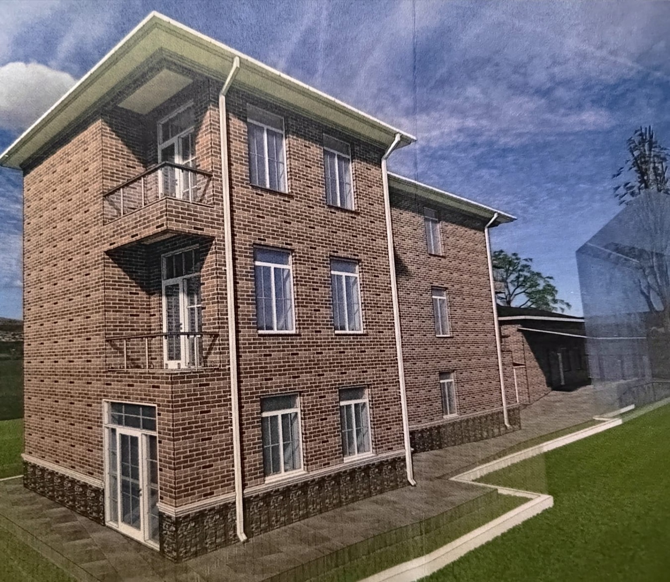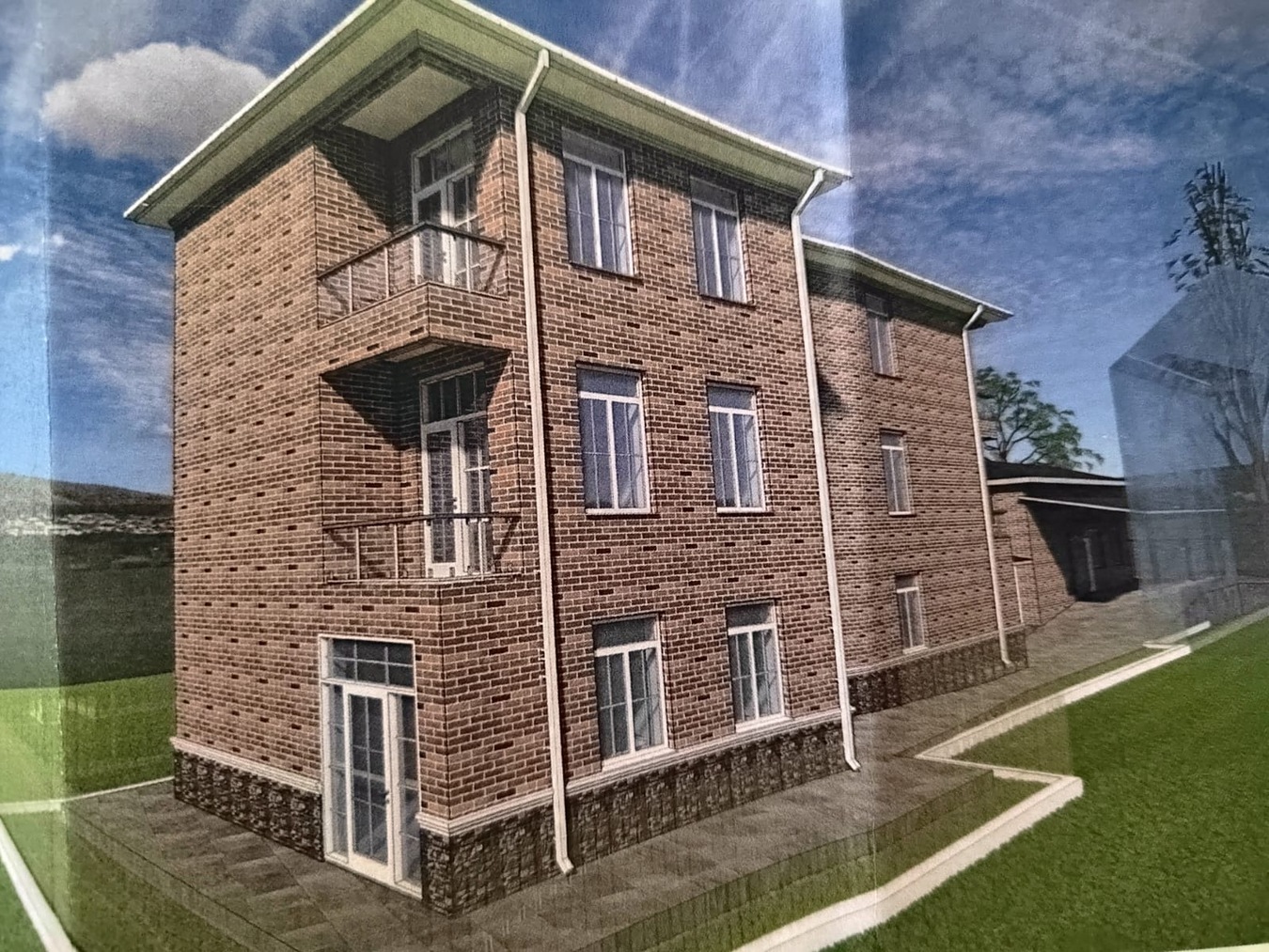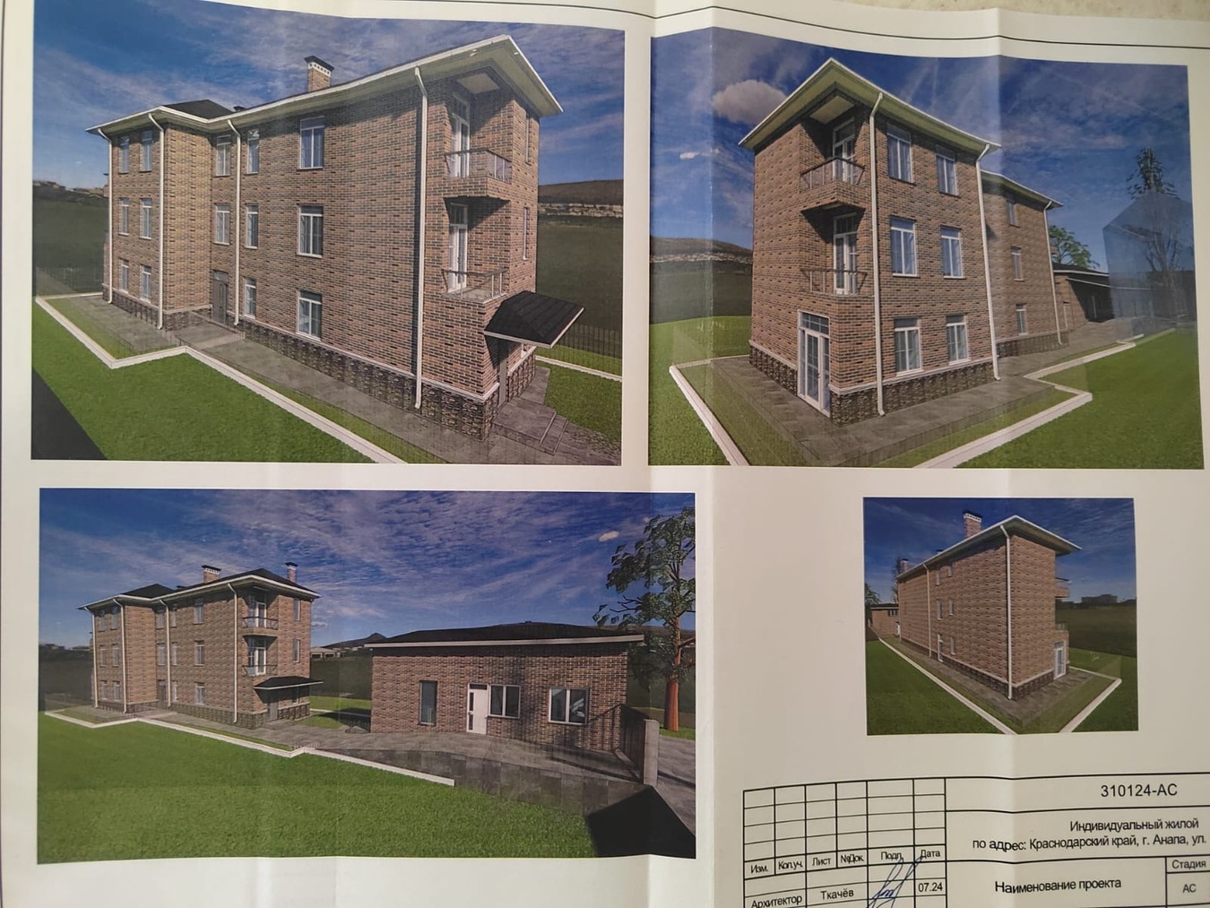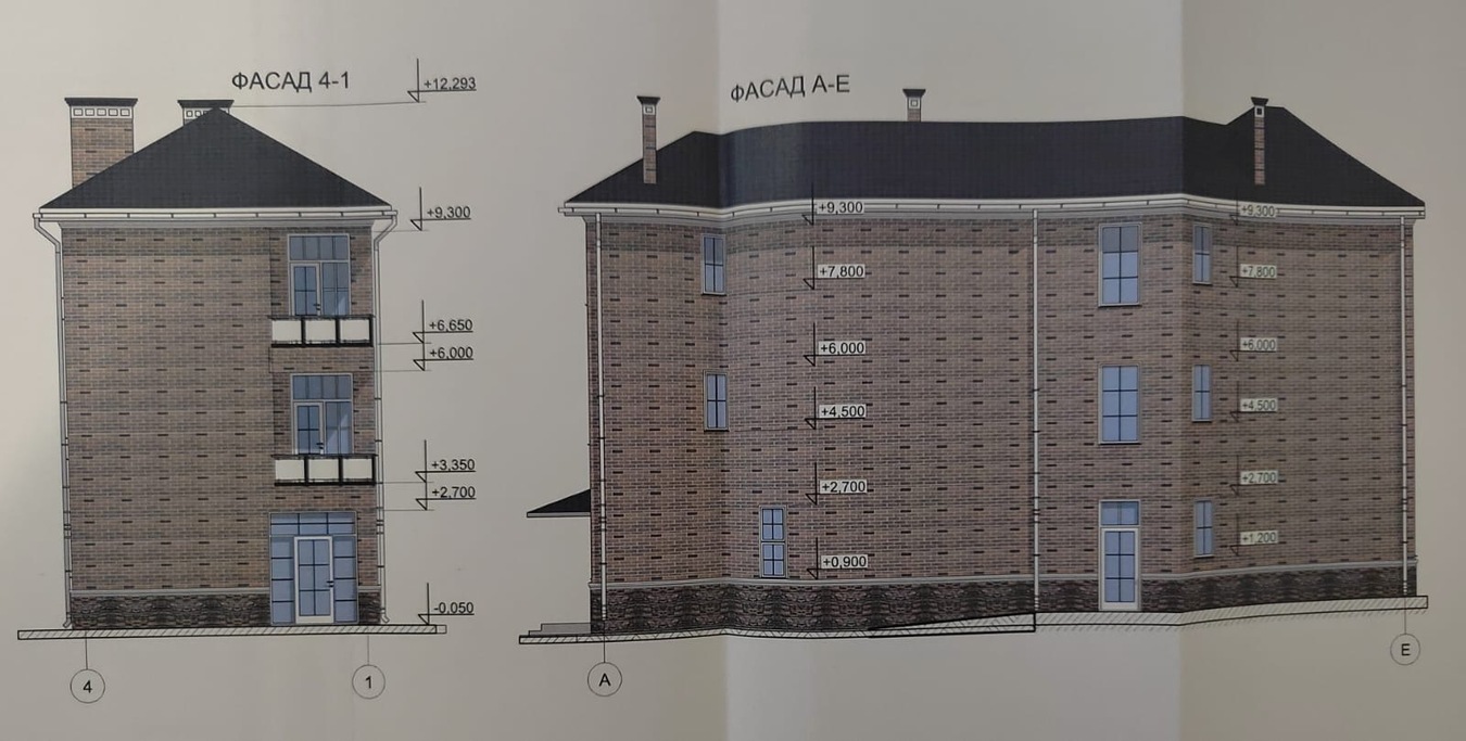 Среди фотографий представлен согласованный и утвержденный проект на строительство дома с коммерческими помещениями.