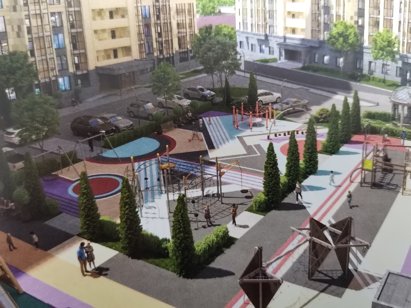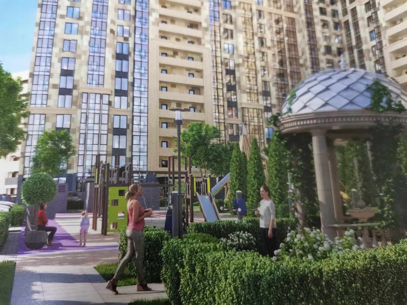Двор охраняемый, комфортные современные зоны отдыха, детские площадки, спортивные площадки.