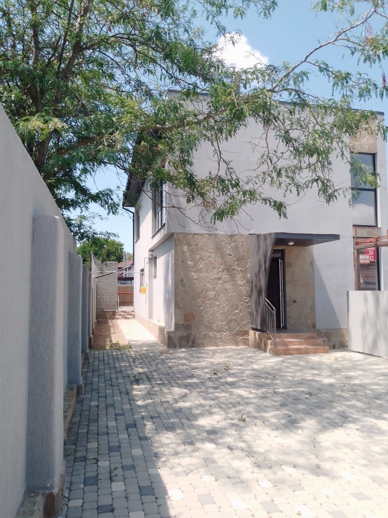 Дом находится практически на пересечении улиц Жолоба и Садовой. В доме, на первом это же расположена большая кухня-гостинная ( установлен кухонный гарнитур и большой угловой диван), бойлерная, кладовая комната, гостевой сан-узел, в прихожей очень вместительный шкаф-купе.