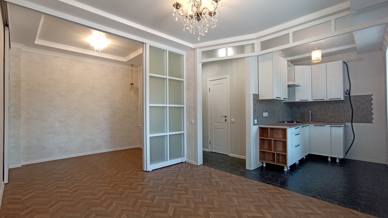Одно комнатная квартира, площадью 30 кв.м. с большой кухней – гостиной. В квартире выполнен дизайнерский ремонт.