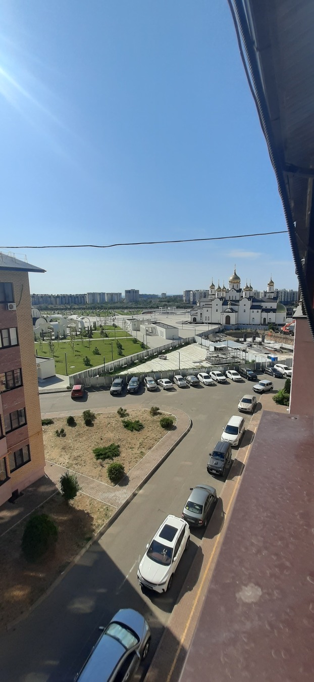 Квартира полностью готова к проживанию: мебель и техника остаются. Окна во двор, с балкона - вид на фонтаны, храм и потрясающие закаты.