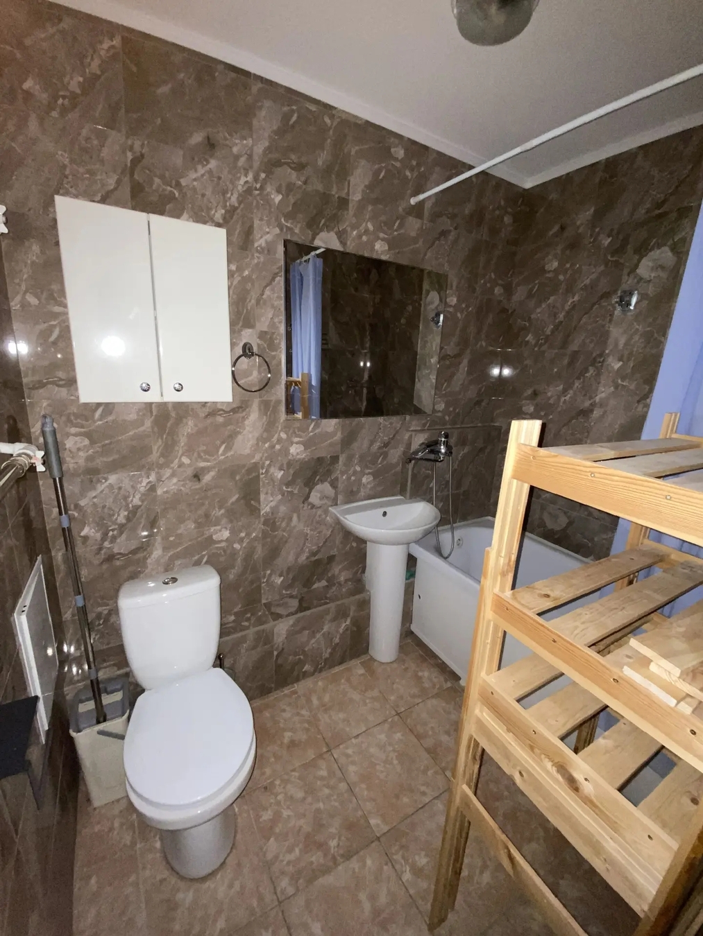 Во дворе предусмотрена открытая парковка, что решает вопрос с поиском места для автомобиля. Санузел совмещенный, что позволяет рационально использовать пространство.