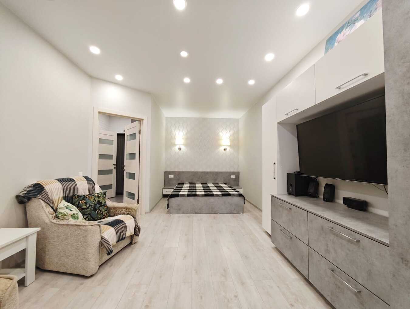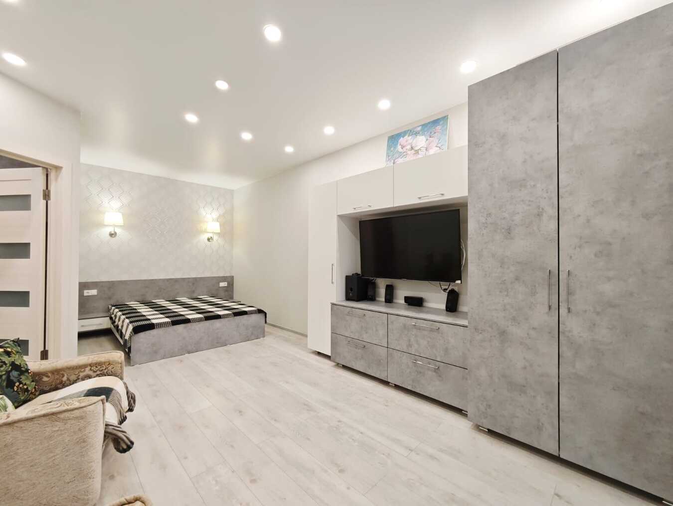 Качественный ремонт в светлых тонах, вся мебель сделана под заказ. Много места для хранения.
