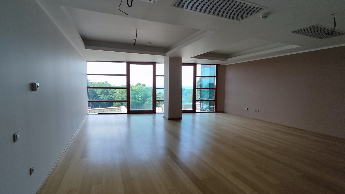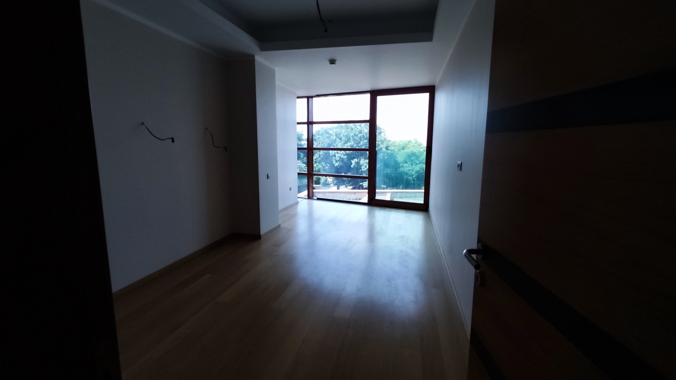 В квартире выполнена отделка премиум-класса: финский паркет из массива дуба, санузлы облицованы итальянской керамической плиткой, стены и потолок выкрашены экологически чистой финской краской, окна из стекла Sinergy с защитой от УФ-лучей.