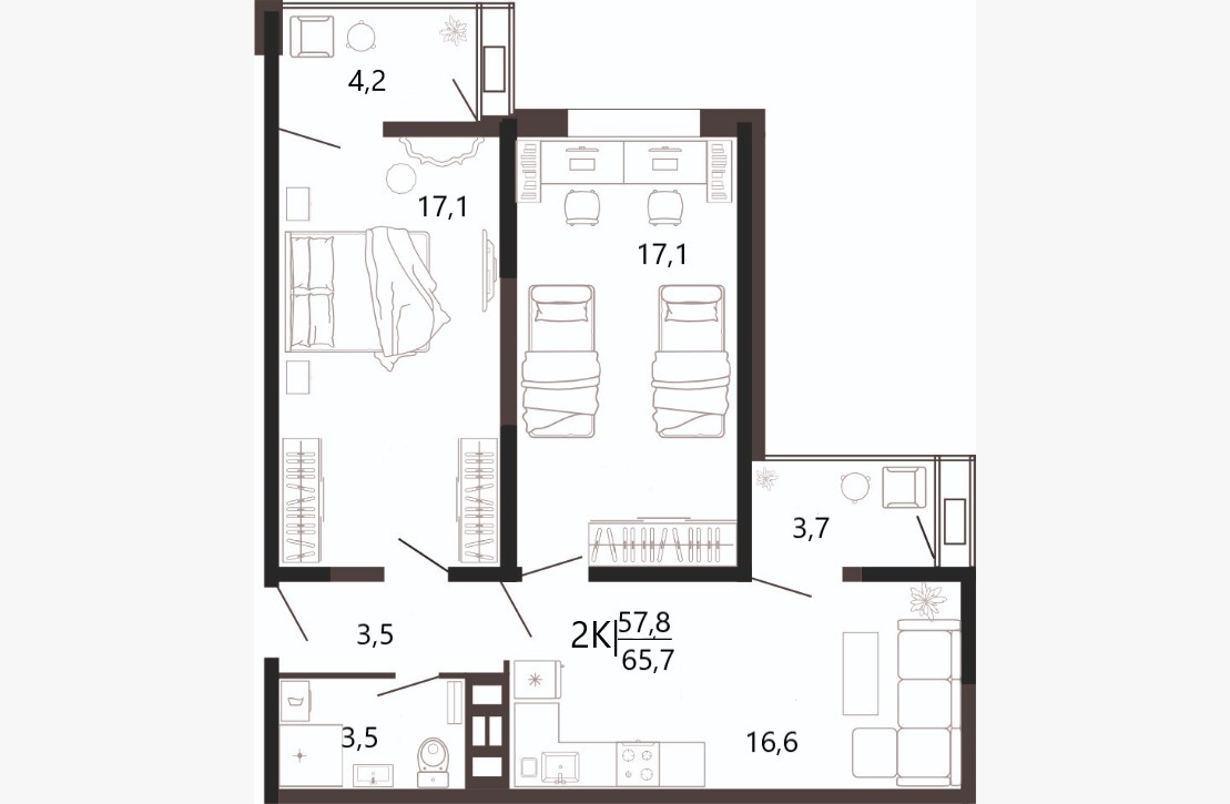 Комнаты раздельные из каждой комнаты есть выход на застекленный балкон.