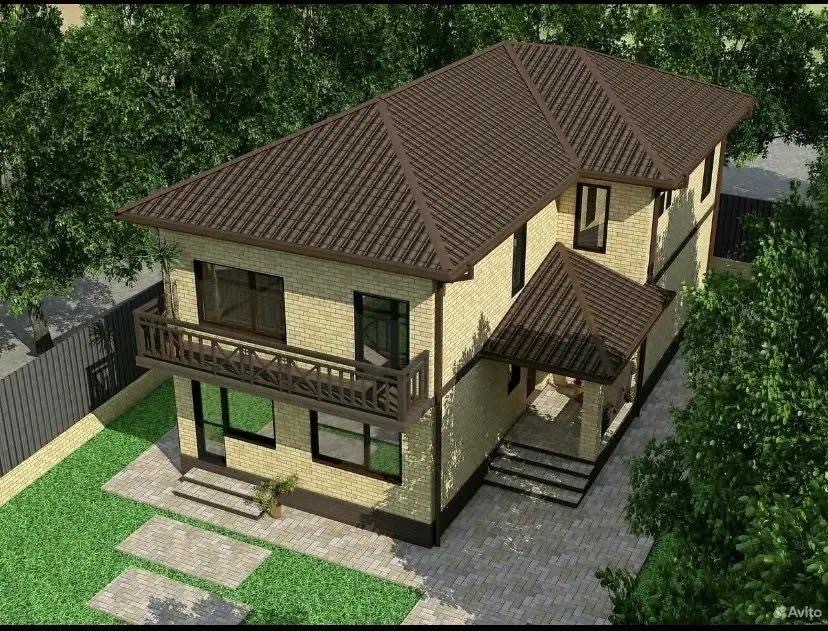 Дом два этажа на ул Широкая. Площадью 235 кв в черновой отделке, облицован желтым кирпичом.