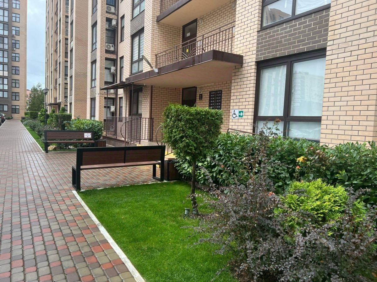 На территории имеется детская и спортивная площадка, просторная парковка, зона для отдыха с шикарным озеленением и живописным фонтаном,