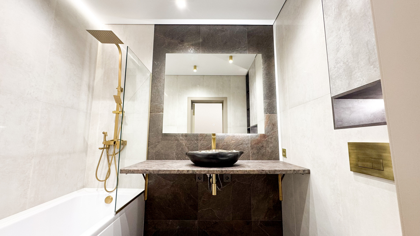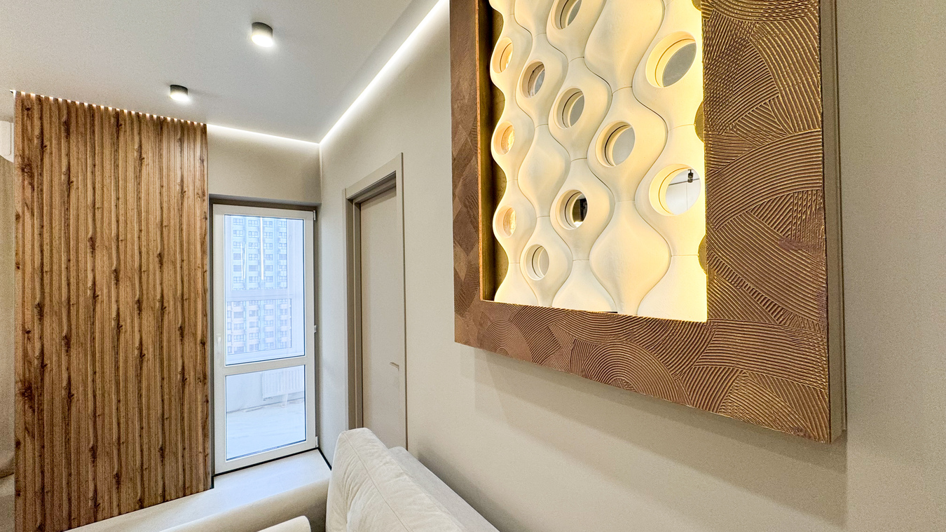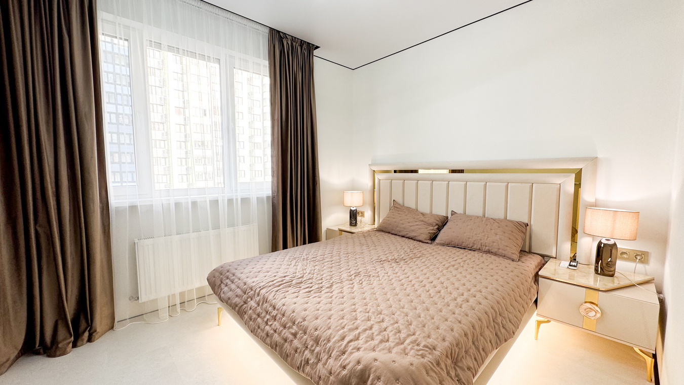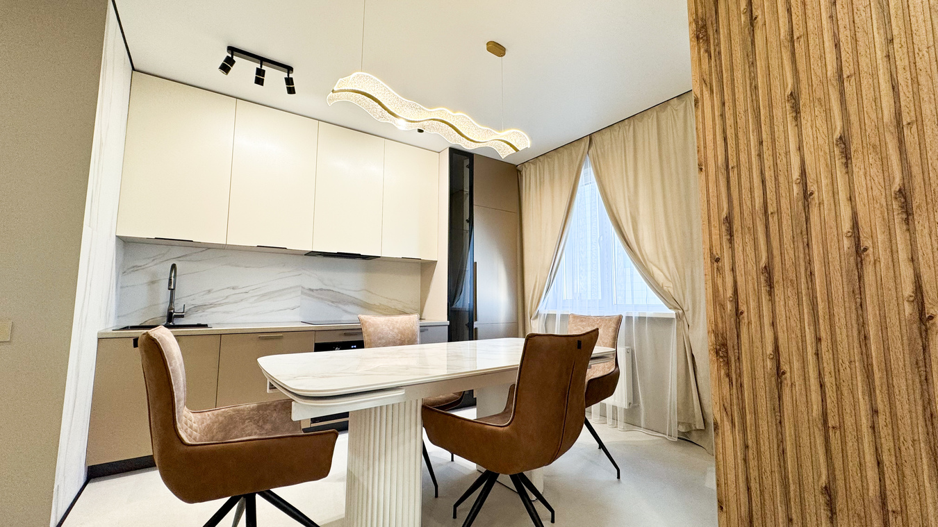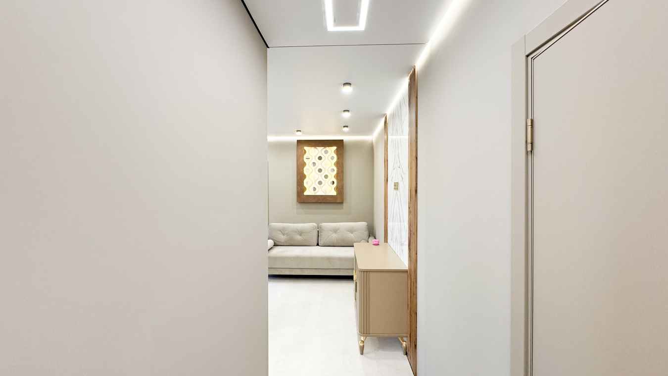 Современная двух комнатная квартира с евро-ремонтом, дизайнерским светом и умным домом.