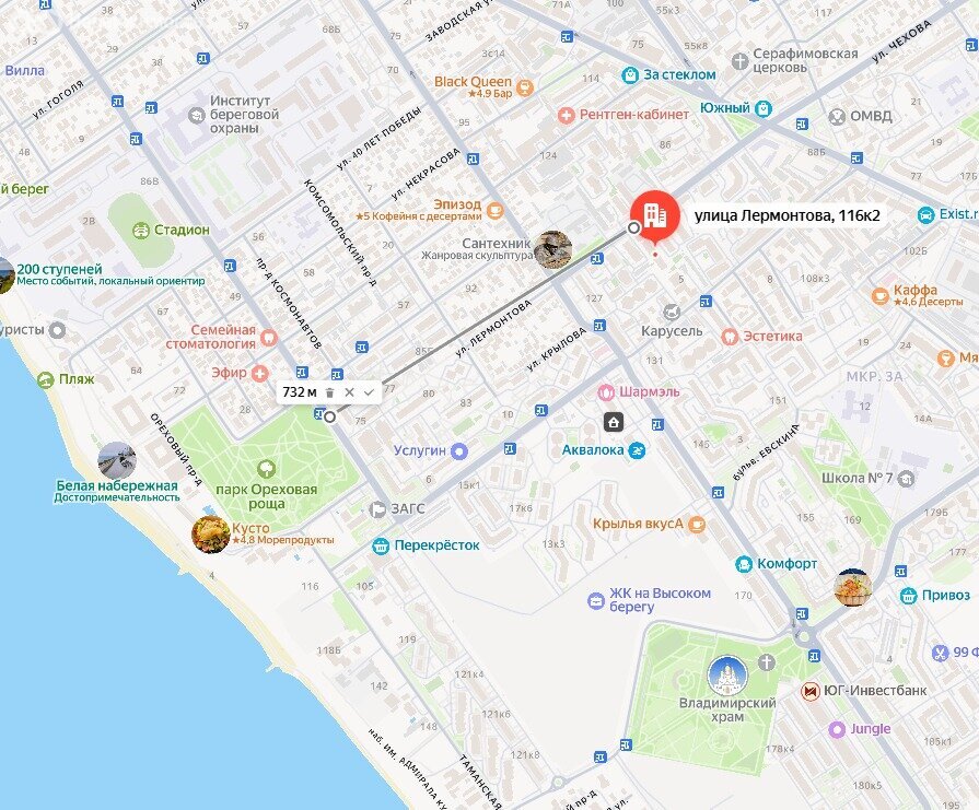 На территории двора - детская и спортивная площадки, парковка. В шаговой доступности гипермаркеты Пятёрочка, Магнит, Сбербанк, 2 продовольственных рынка, педагогический университет, индустриальный техникум, городская полиция, Скорая помощь, банкоматы, аптеки, множество магазинов, мастерские, пекарни, и т.д. Остановка маршруток через дорогу, можно добраться по всем направлениям по городу и пригородам Анапы, от Витязево до Большого Утриша. И главное - парк Ореховая роща и море! Дo Ореховой рощи и Белой набережной 8 минут прогулочным шагом.
