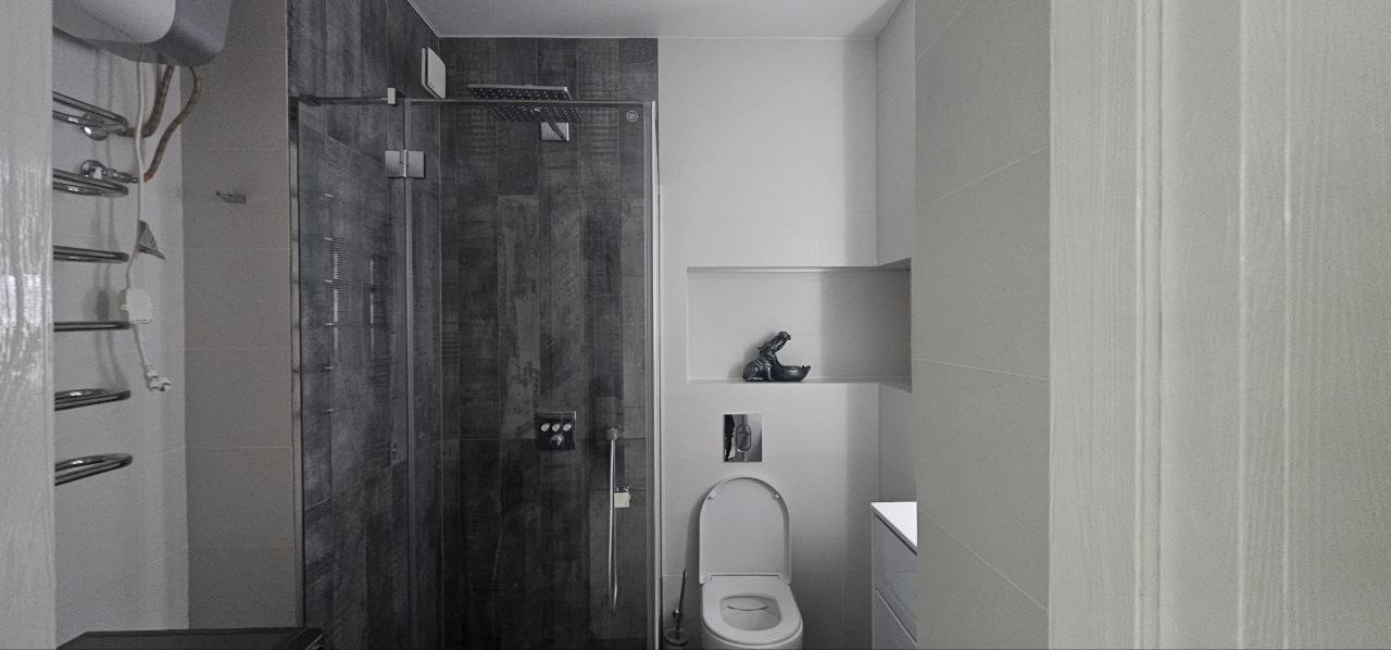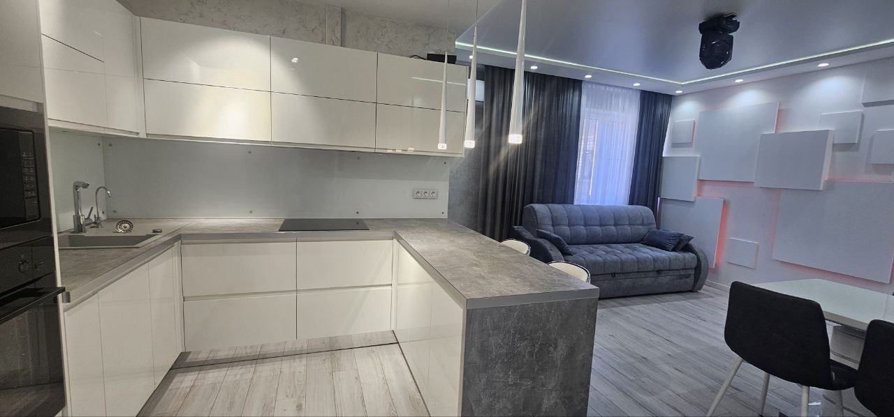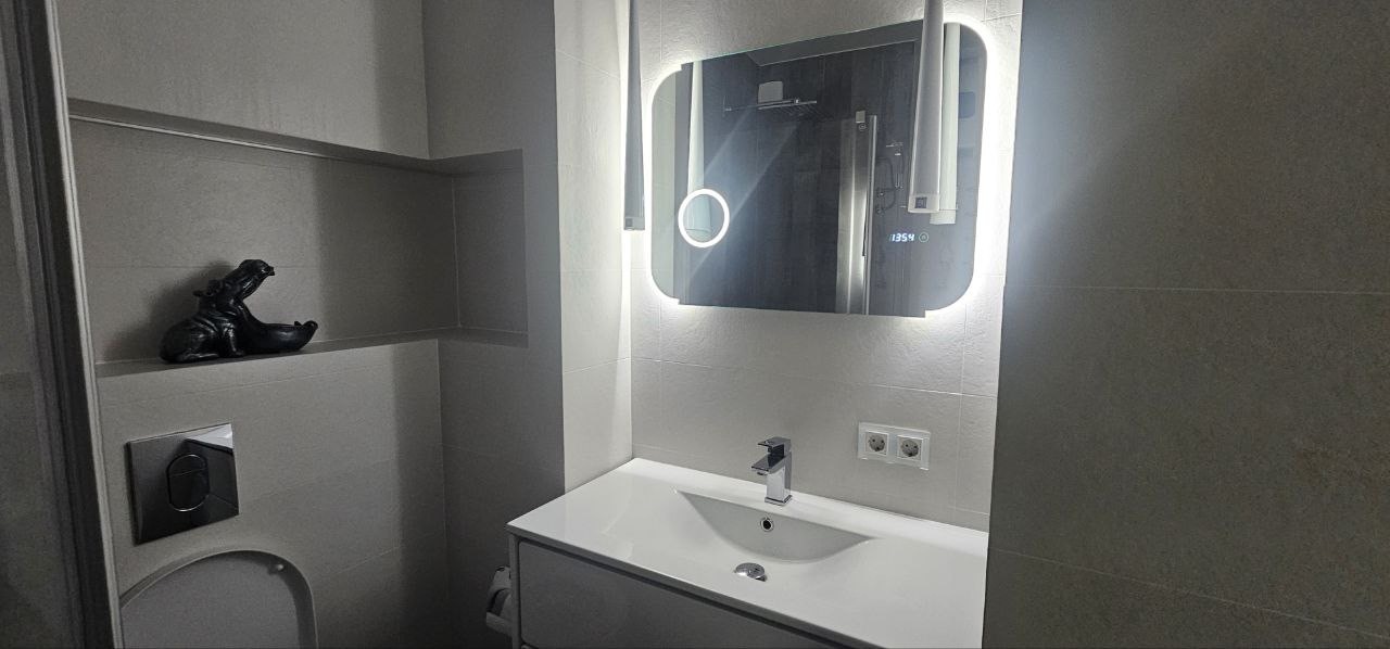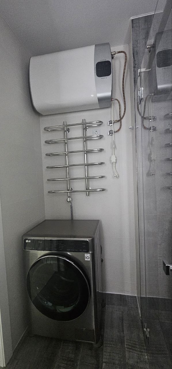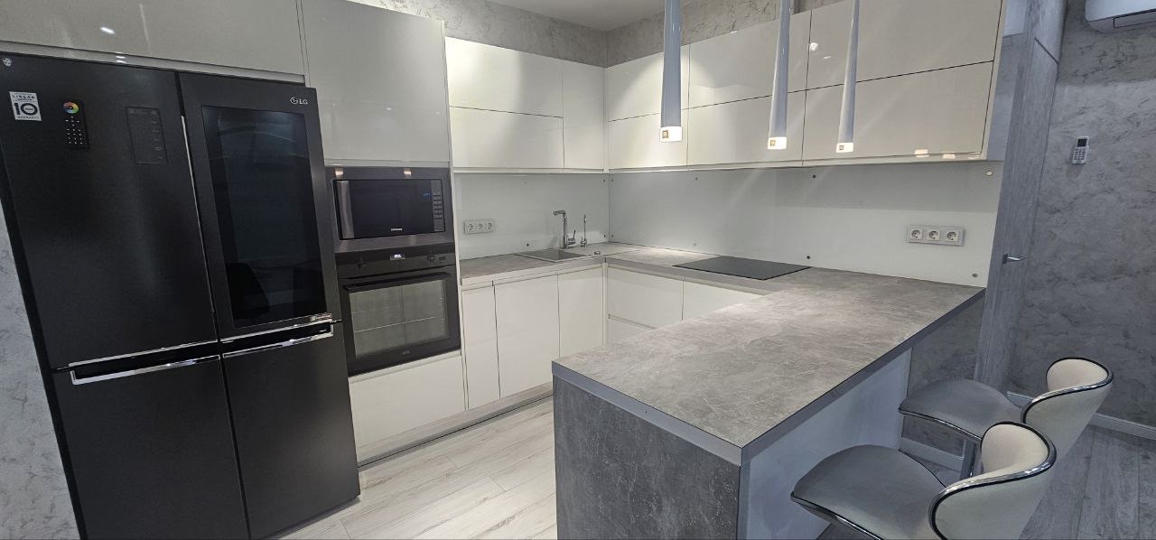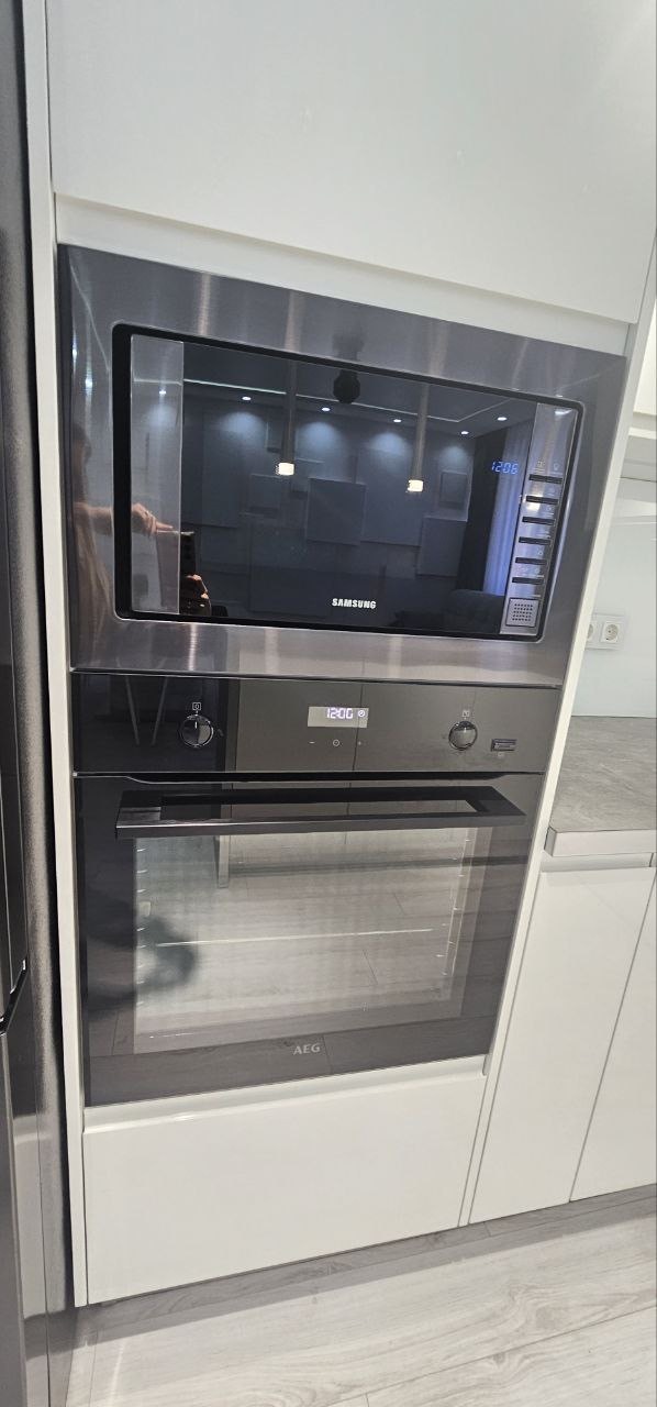⦁ Вся мебель и техника остаётся: кровать с матрасом орматек, кухня DORS, качественная сантехника groe, духовой шкаф, варочная панель и посудомойка AEG, вместительный холодильник LG, стиральная машина samsung, установлен фильтр осман и микроволновая печь.