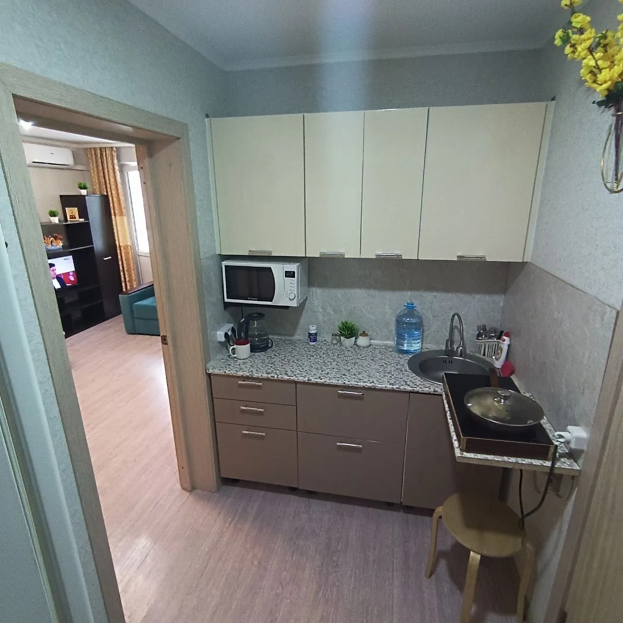 Продается студия с ремонтом, мебелью, техникой.