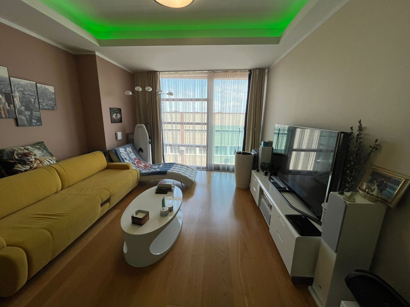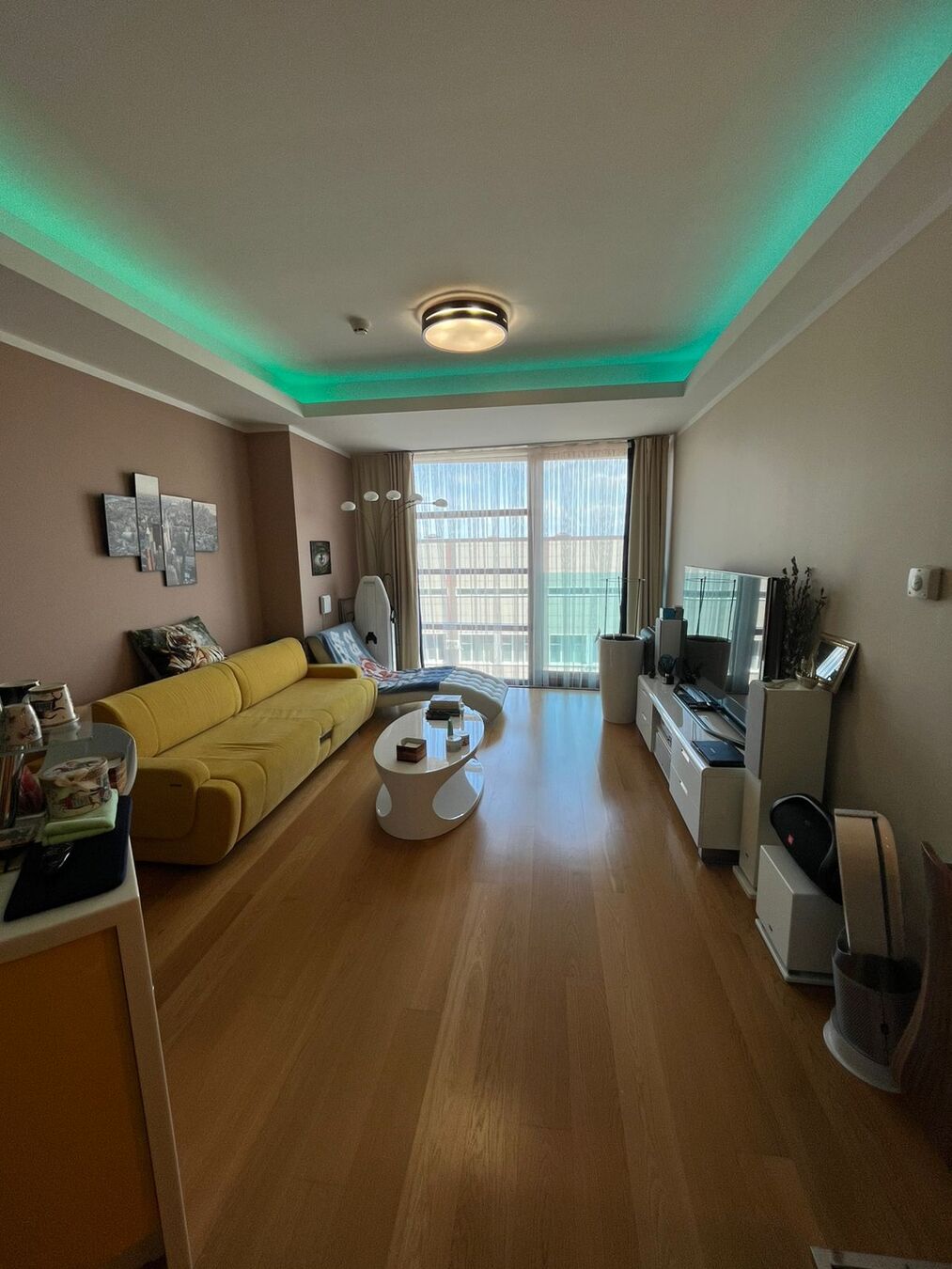 Выполнен современный ремонт из качественных материалов, стены под покраску для Вашего дизайна, на полу уложена паркетная доска, мебель техника и все необходимое в квартире, Lеd климат-контроль для создания комфортного микроклимата.