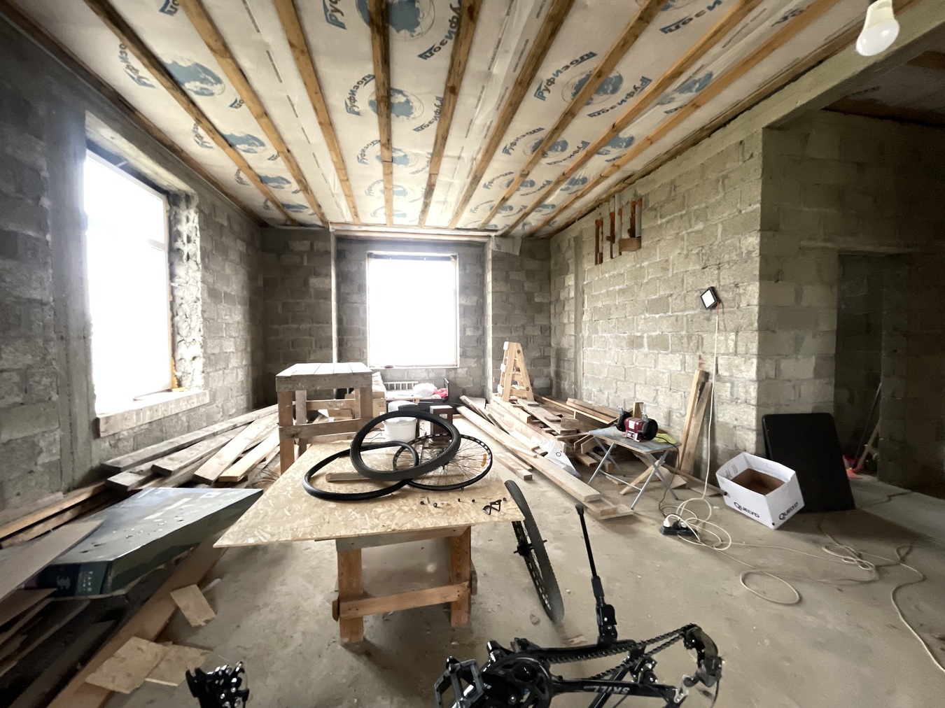 **Дом** строился для себя, поэтому отличается высоким качеством и надёжностью. Толщина стен составляет 50 см из керамзитбетона, кирпича и утеплителя. Крыша покрыта мягкой кровлей, перекрытие выполнено из бетона, а фундамент — сверх надёжен.