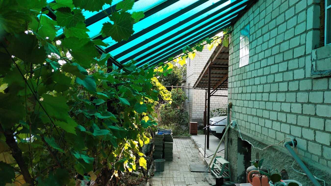 Придомовая территория имеет навес и большую забетонированную площадку, есть парковка на два автомобиля.
