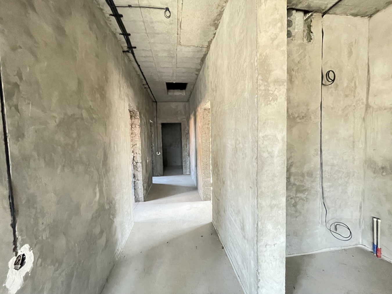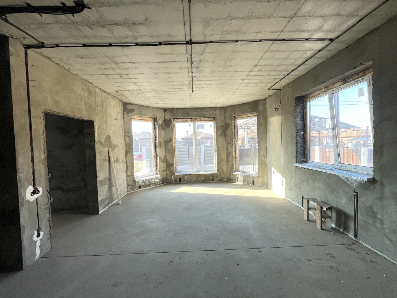 Стены дома имеют предчистовую отделку для дизайнерской идеи.