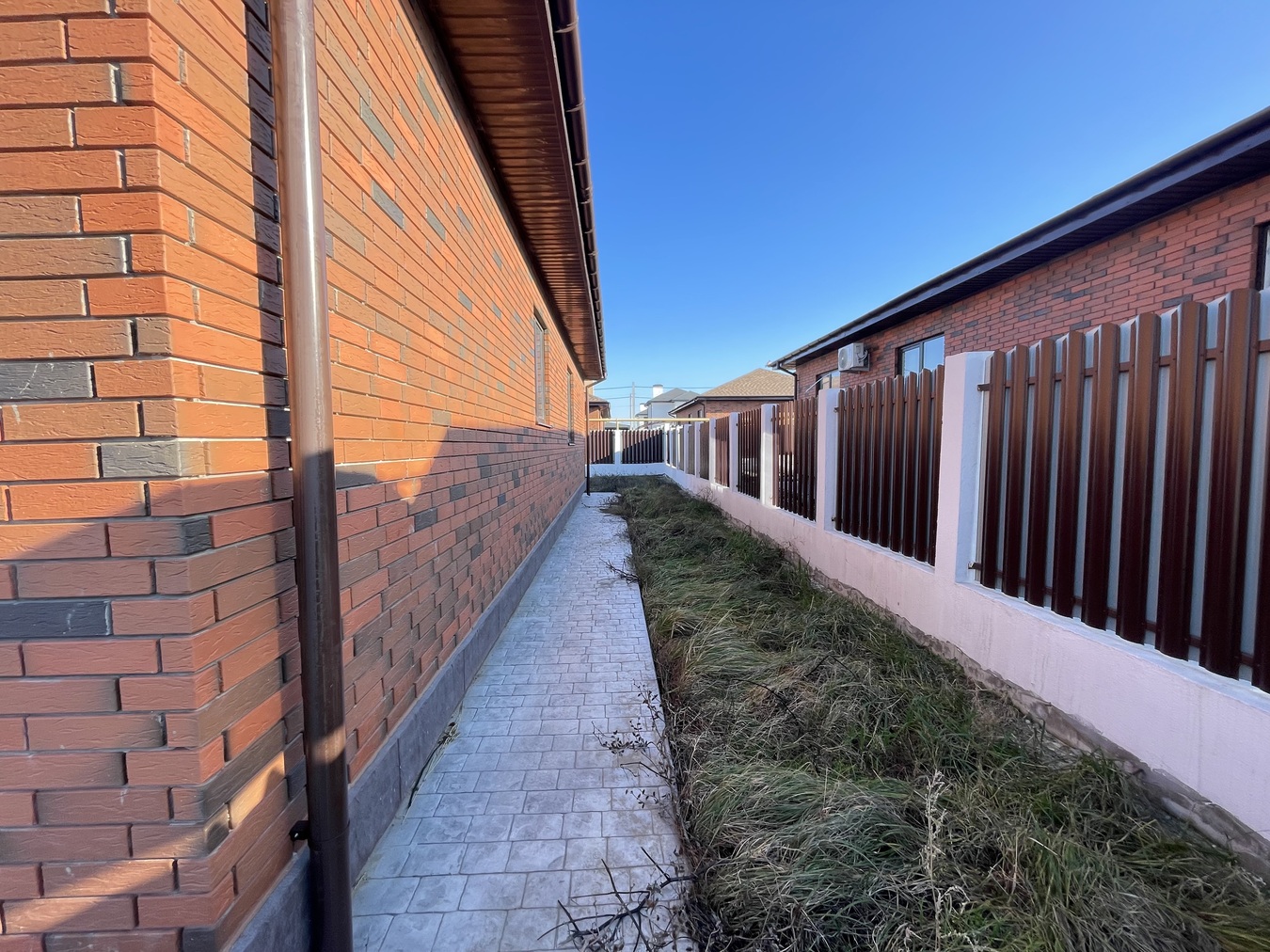 Стены дома выполнены из кирпича и заполнены керамзитоблоками и утеплителем. Это обеспечивает отличную теплоизоляцию и долговечность конструкции.