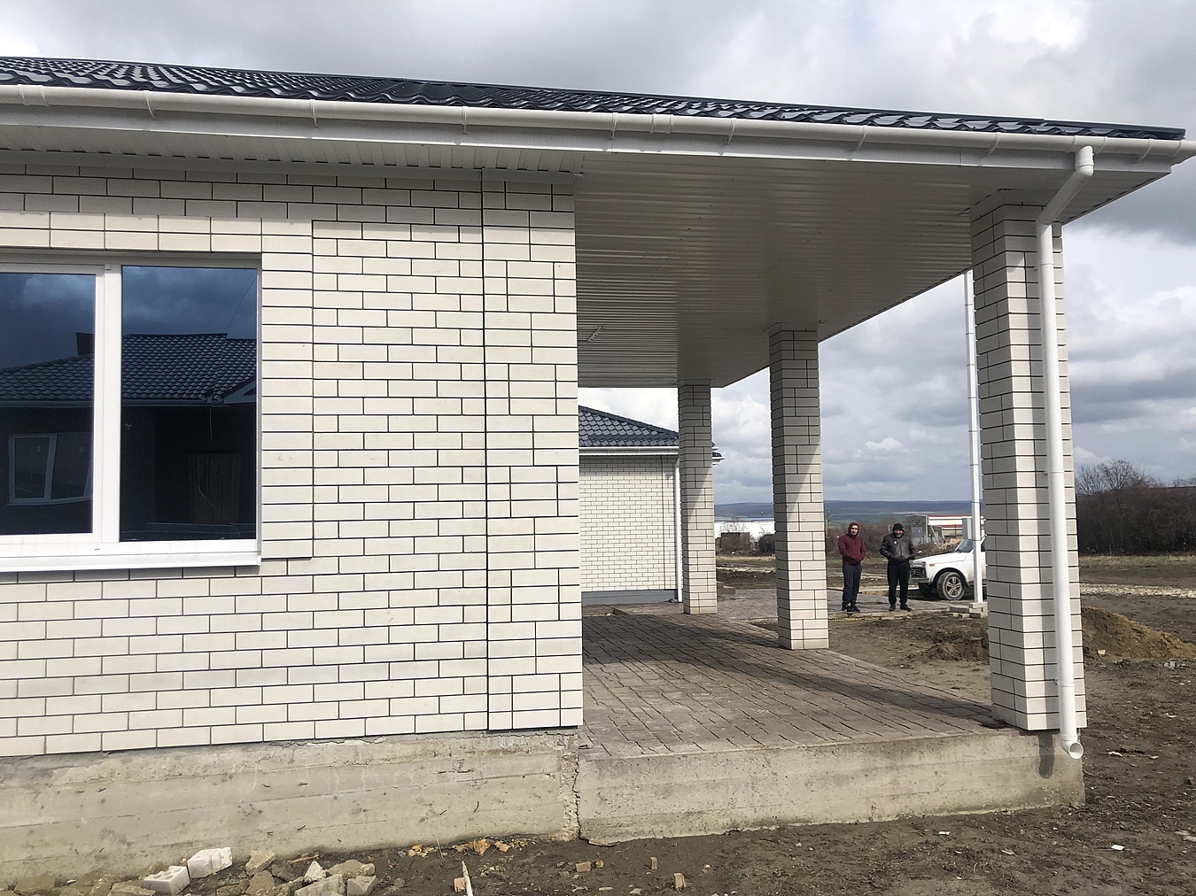Продается срочно дом 83 кв.Дом новый построен из белого кирпича,блок и утеплитель. Участок на котором стоит дом угловой два фасада.Отдаем срочно забор делаем под покупателя .печатный бетон сделан ,При домовая территория готова.
