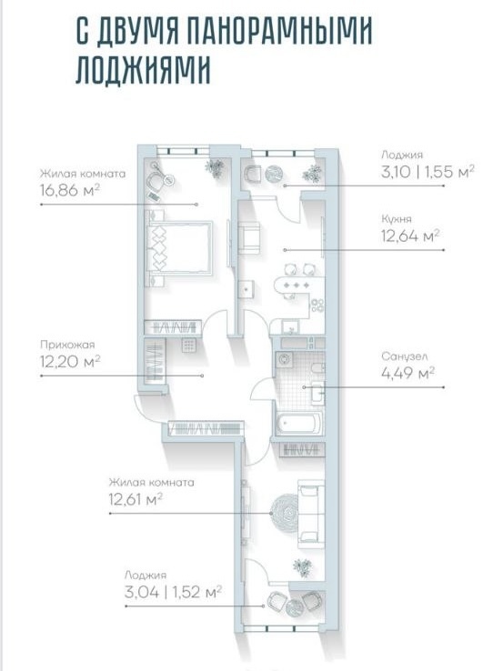 В квартире две панорамные лоджии!