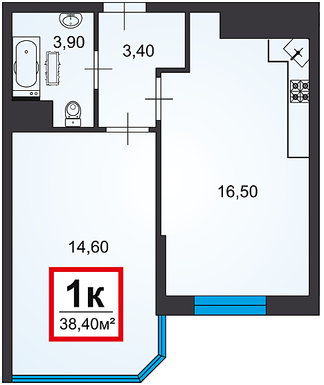 Продается 1-комнатная квартира, 38,4 кв.м, с предчистовой отделкой на 6 этаже 15-этажного монолитного дома С видом во двор, застекленный балкон, индивидуальное газовое отопление