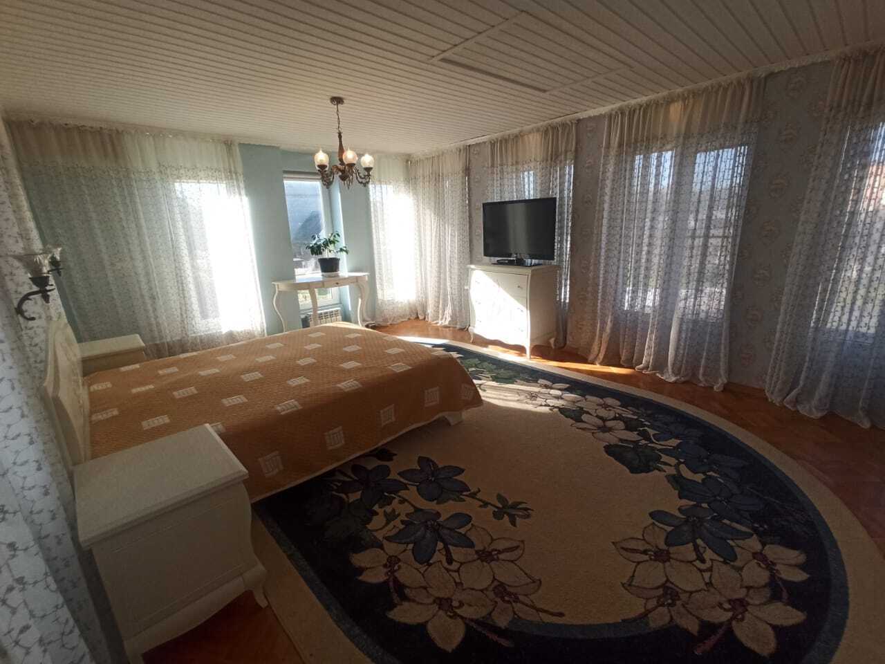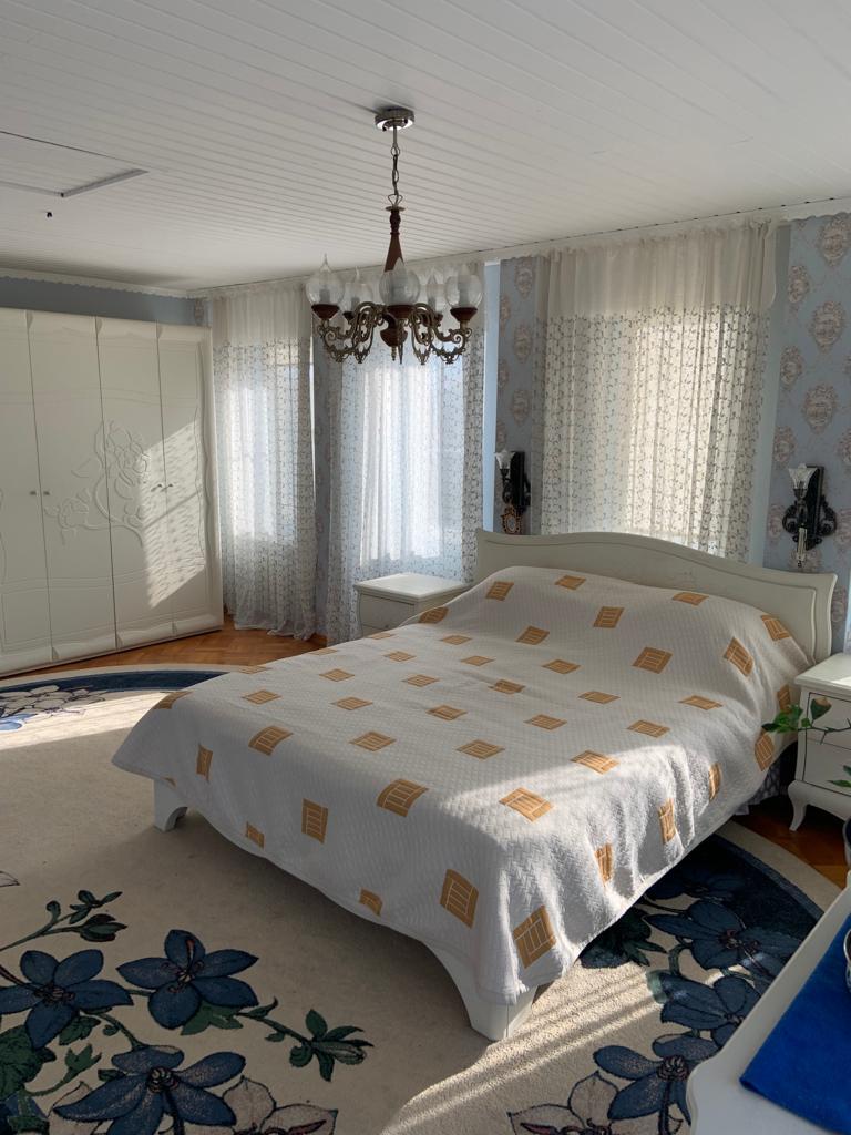 Двухэтажный коттедж с верандой (есть необходимые разрешения на возведение 3 этажа с мансардой) выполнен из керамзитнобетонных блоков. На первом этаже имеет просторную кухню, гостиную, санузел, подсобное помещение, установлен теплый пол.
