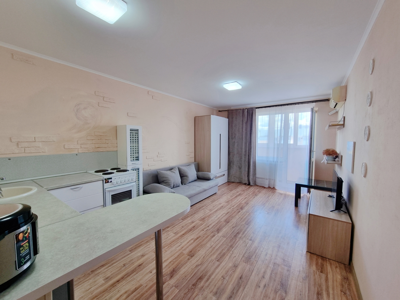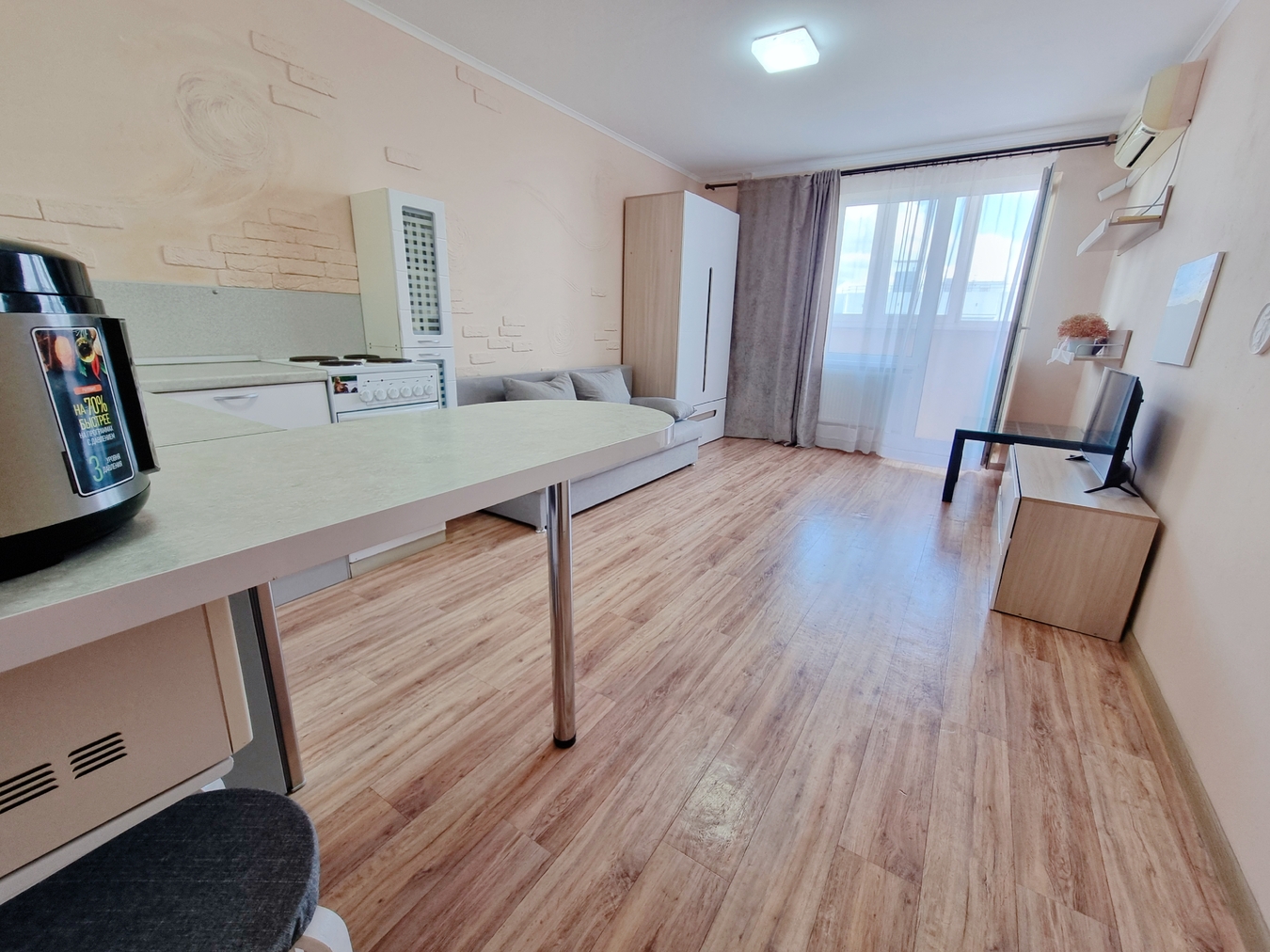 Уютная светлая студия с видом на горы.