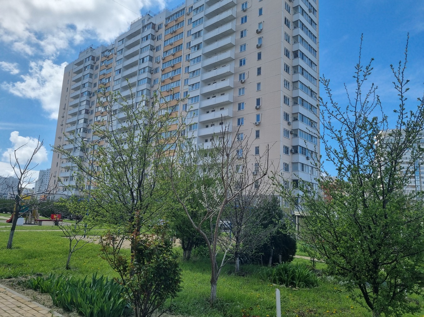 В шаговой доступности детский сад. Новая гимназия Эврика. Крещенский парк. И высокий берег моря. Совсем скоро рядом построят красивую белую набережную.