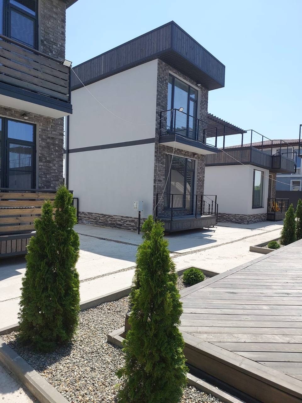 На территории расположено несколько коттеджей .