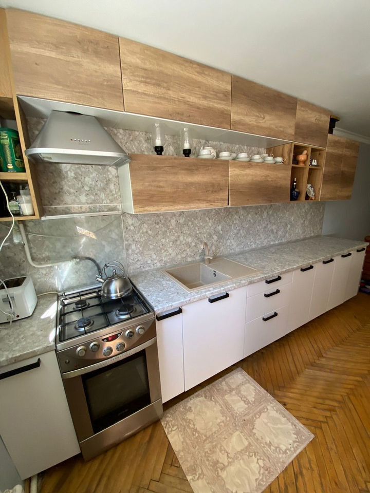 В кухне - гостиной установлен новый встроенный кухонный гарнитур.