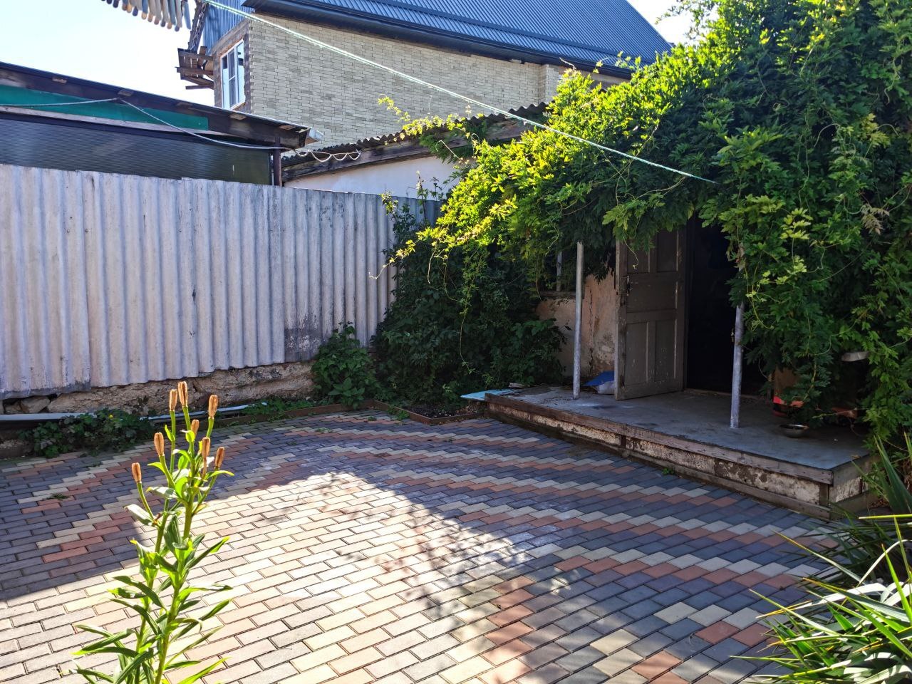 На участке имеется кладовая и курятник, большая часть участка вымощена тротуарной плиткой
