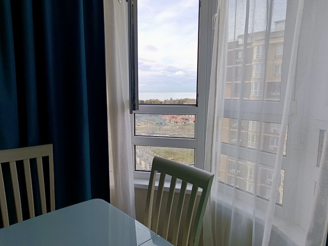 Кухня просторная с прекрасным видом на море.