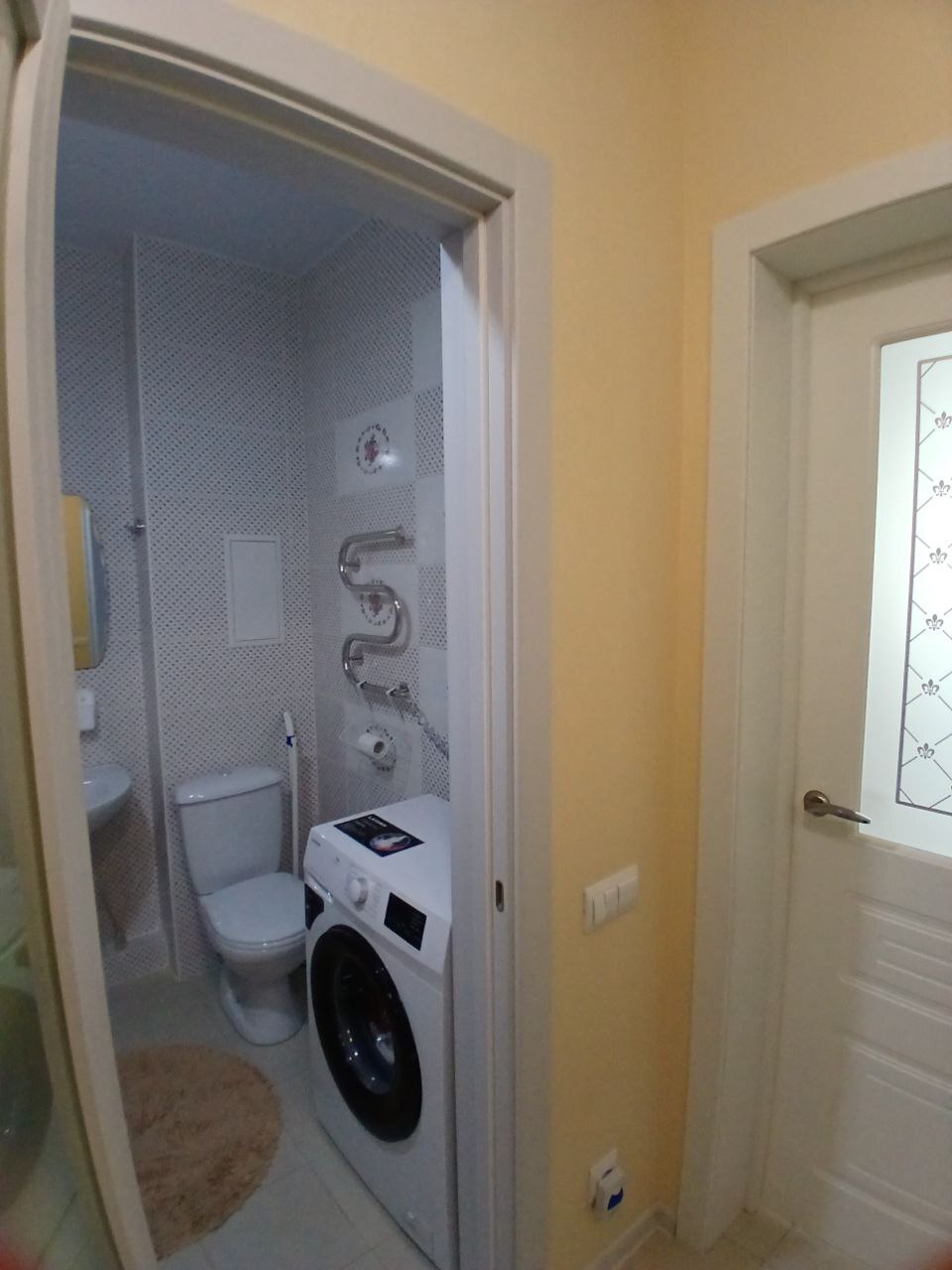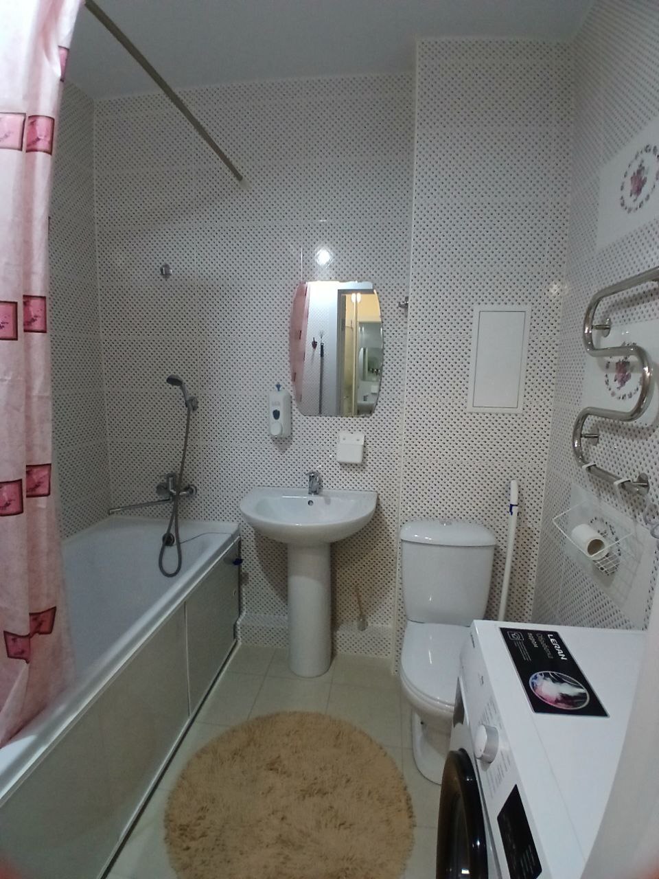 Совмещенный санузел выполнен в современном стиле.