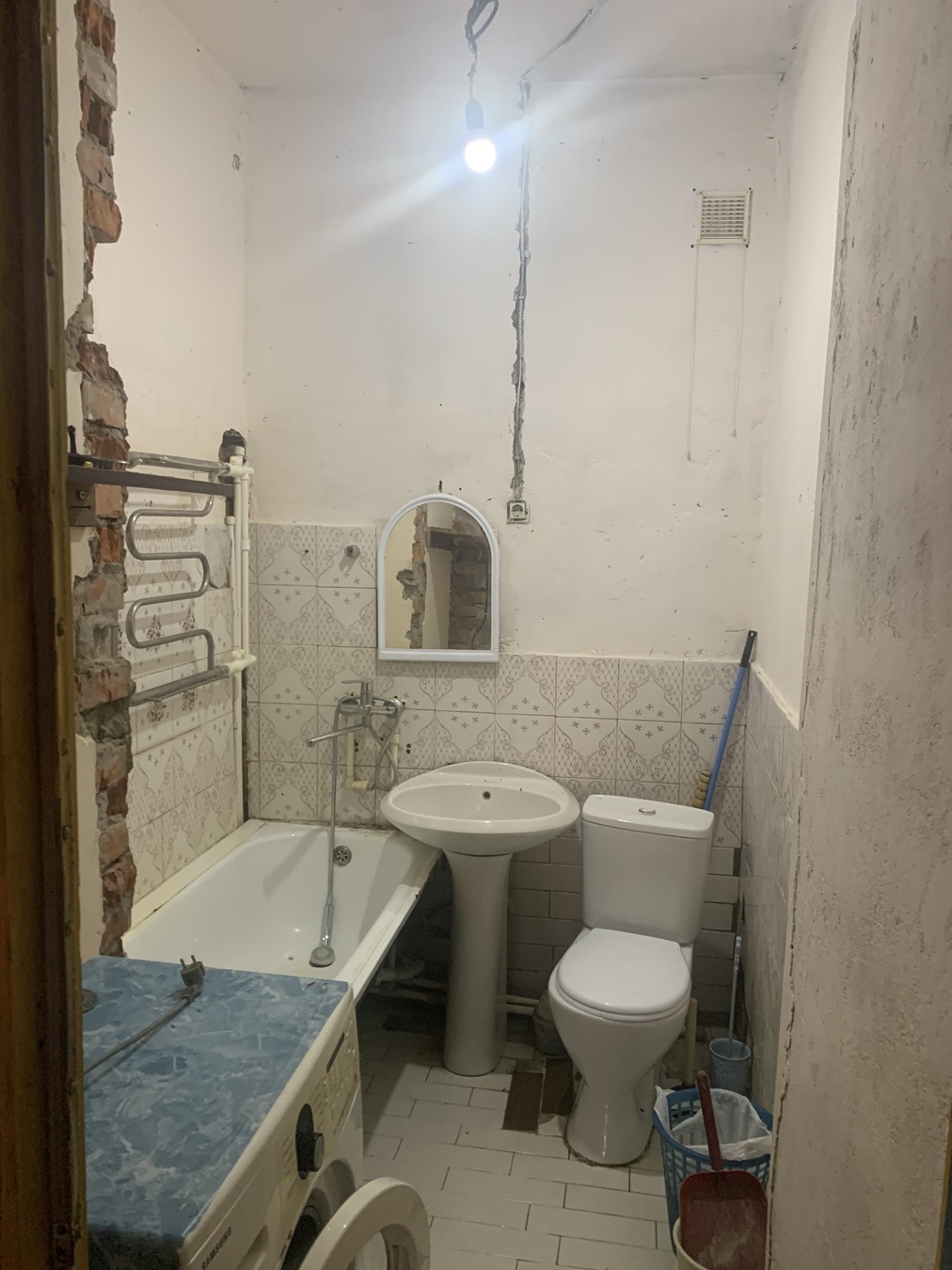 Часть стен в квартире подготовлены под штукатурку.