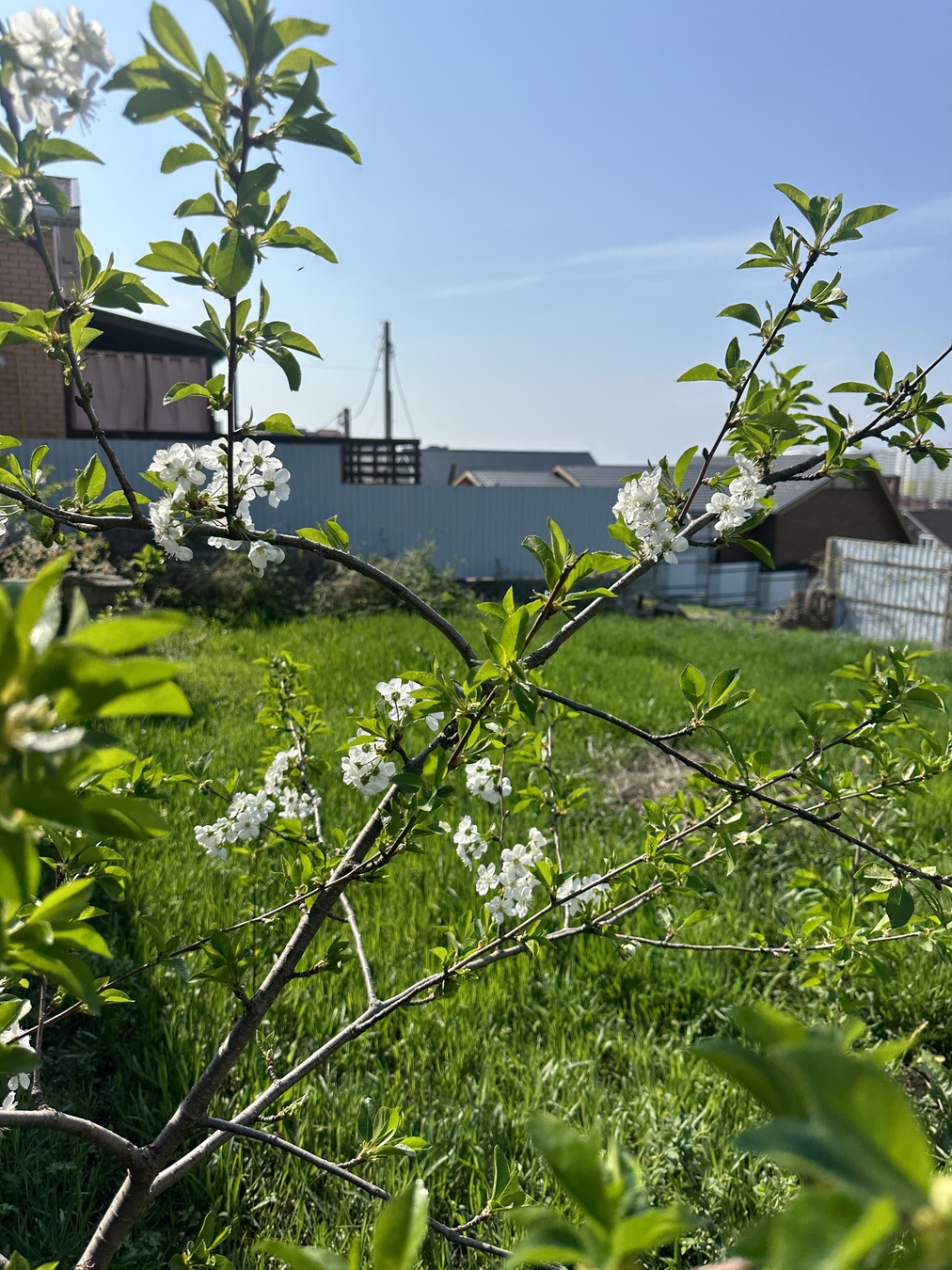 На участке высажены плодово-ягодные деревья.