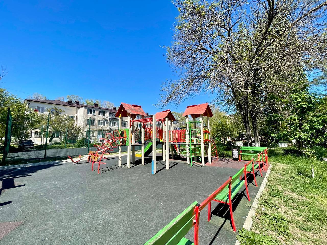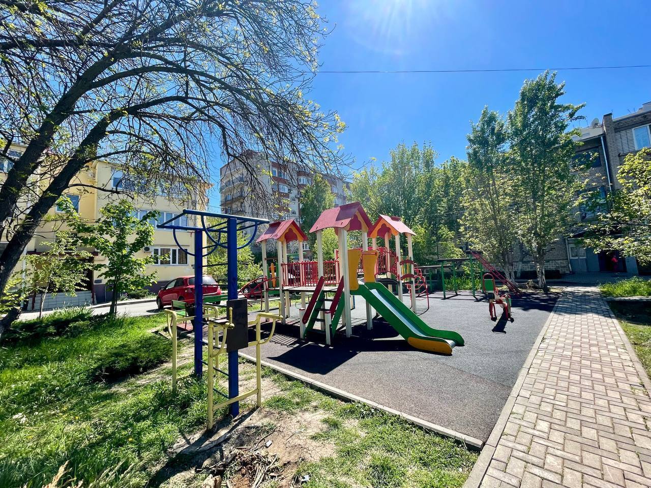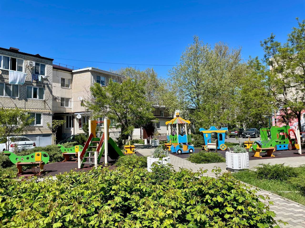 👍Придомовая территория оборудована зонной отдыха, спортивной и детской площадкой👍