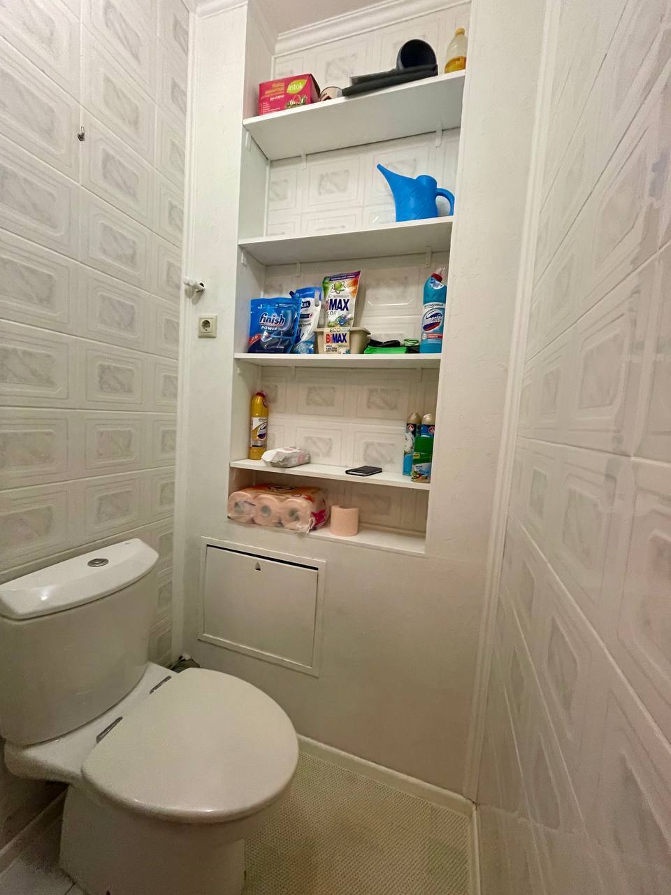 Установлен гигиенический и тропический душ. Есть зона для хранения.