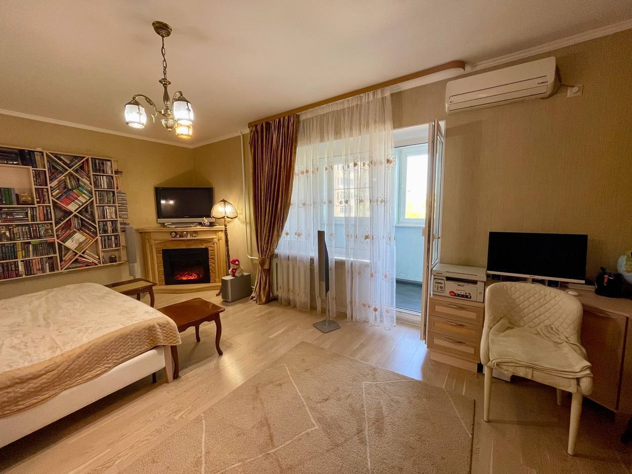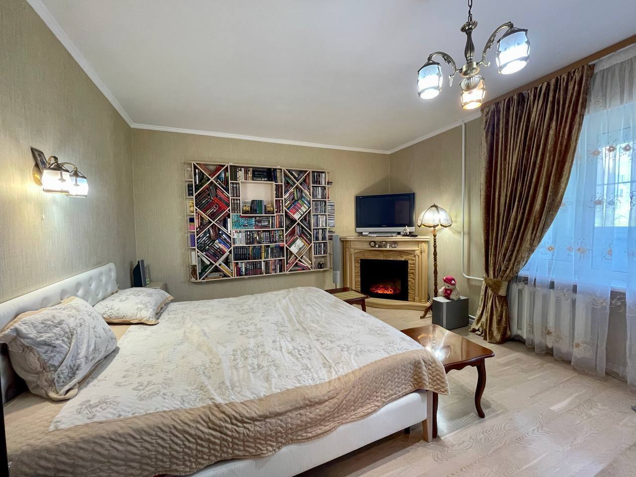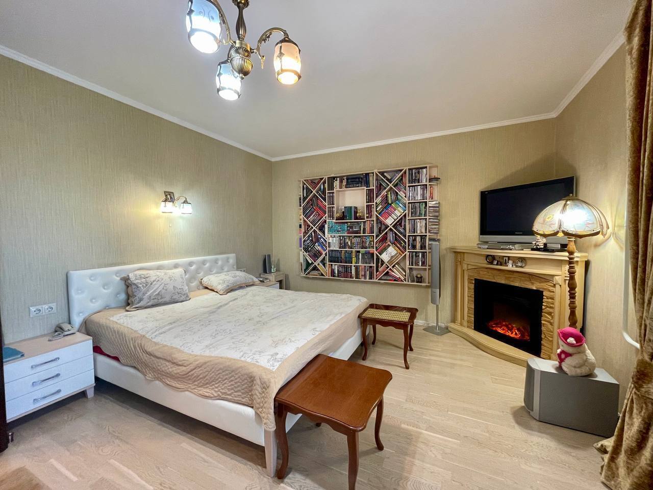 В хозяйской спальне установлен электрокамин.