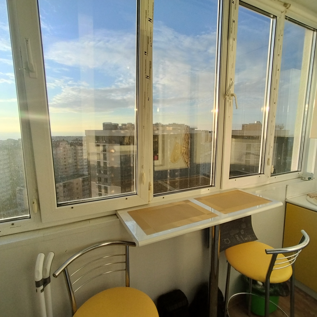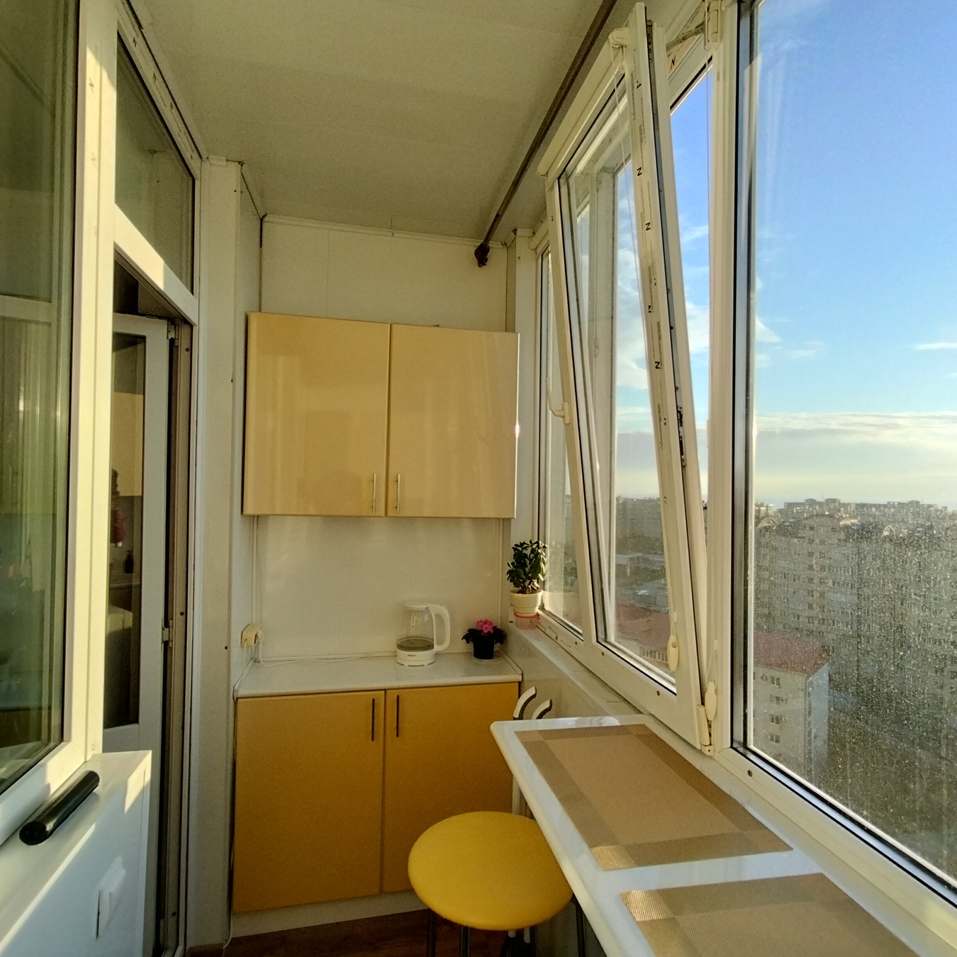 Квартира кондиционирована. Лоджия остеклена . Ужин с видом на закат и весь город как на ладони для вас!